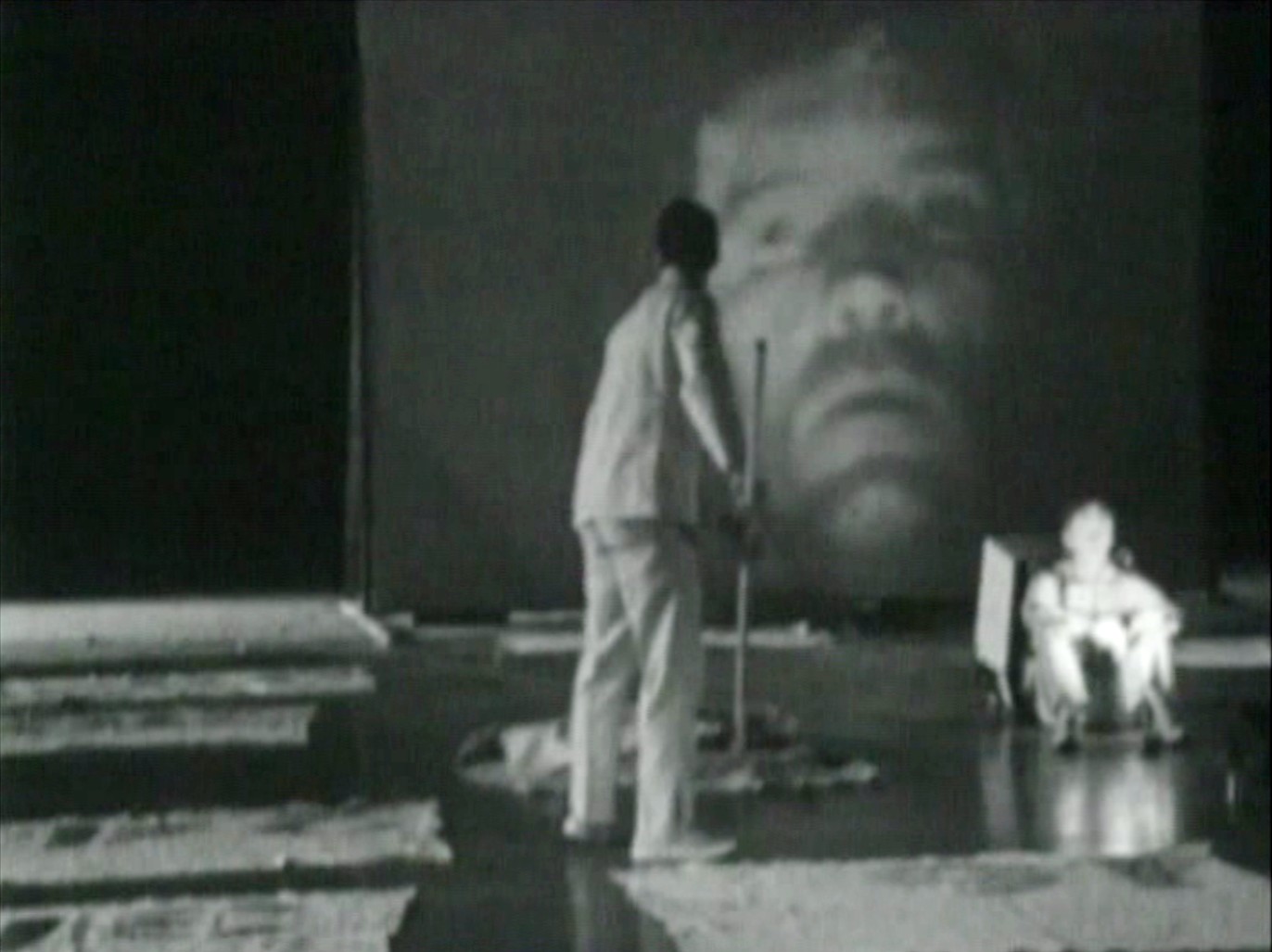 Grass Field fut présentée les 13 et 22 octobre 1966. Cette performance d’Alex Hay relève à la fois du dispositif scénographique et de l’expérience scientifique. Couvert d’électrodes qui amplifient les sons les plus intimes de son corps, assis devant un grand écran sur lequel apparaît son visage, l’artiste repousse les limites perceptibles de l’individu.