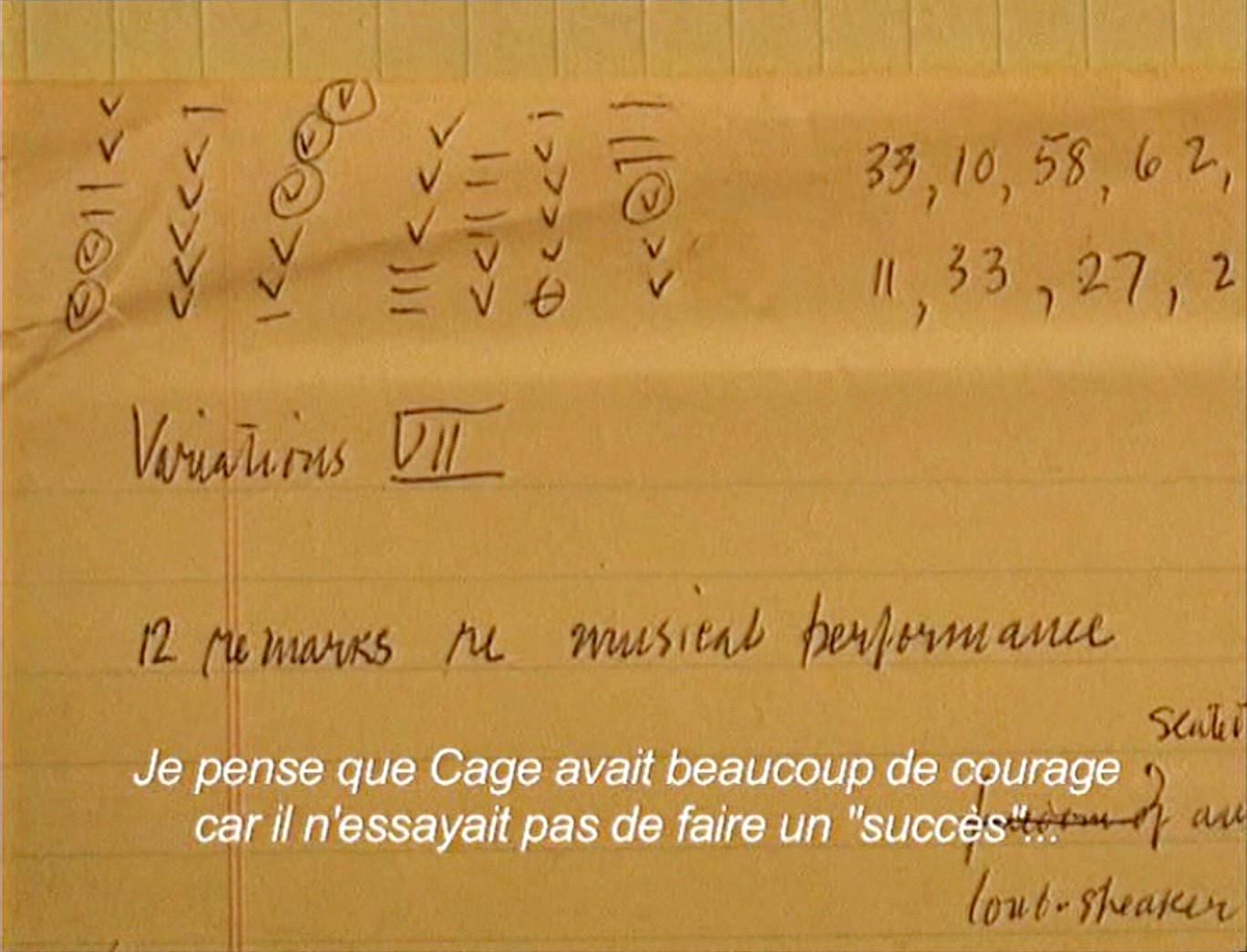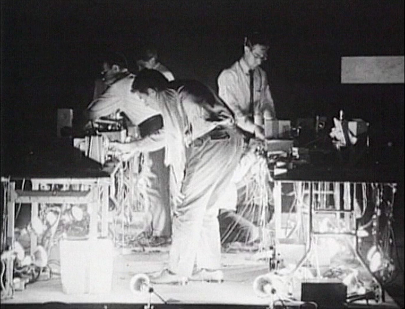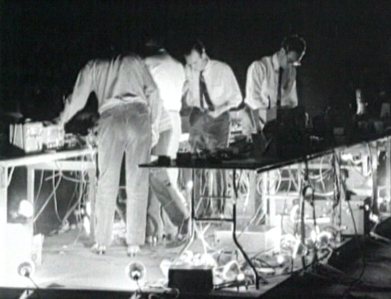 Variations VII, performance électroacoustique de John Cage, fut présentée les 15 et 16 octobre 1966. Dans la droite ligne de sa philosophie musicale, on y voit le compositeur, assisté d’une équipe d’ingénieurs et de musiciens, mélanger en temps réel des sons transmis de la ville et le bruit d’ustensiles quotidiens, le tout provoquant une incroyable masse sonore.