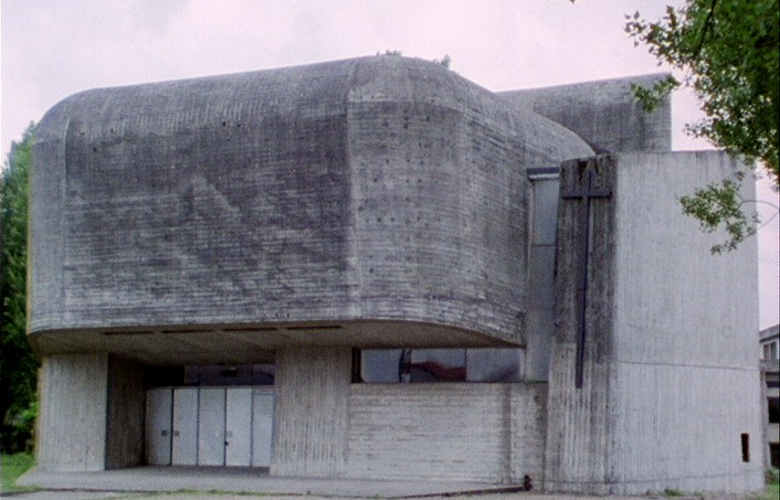 En un long travelling silencieux, la caméra vient lécher les façades des maisons ordinaires et des HLM au milieu desquels surgit soudain la forme monumentale de l'église blockhaus Sainte-Bernadette du Banlay, en périphérie de Nevers. La voix off nous invite alors à repérer les indices analogiques qui empruntent à la fois à un lieu de guerre, le bunker, et à un lieu de paix, l'église.