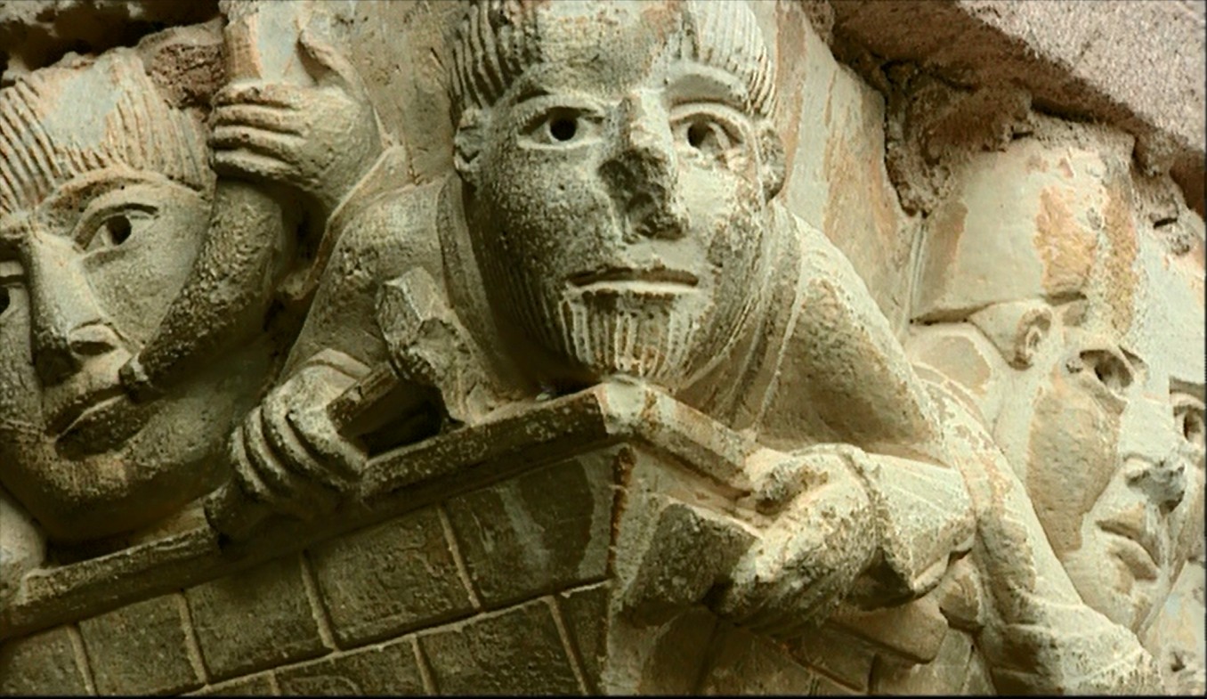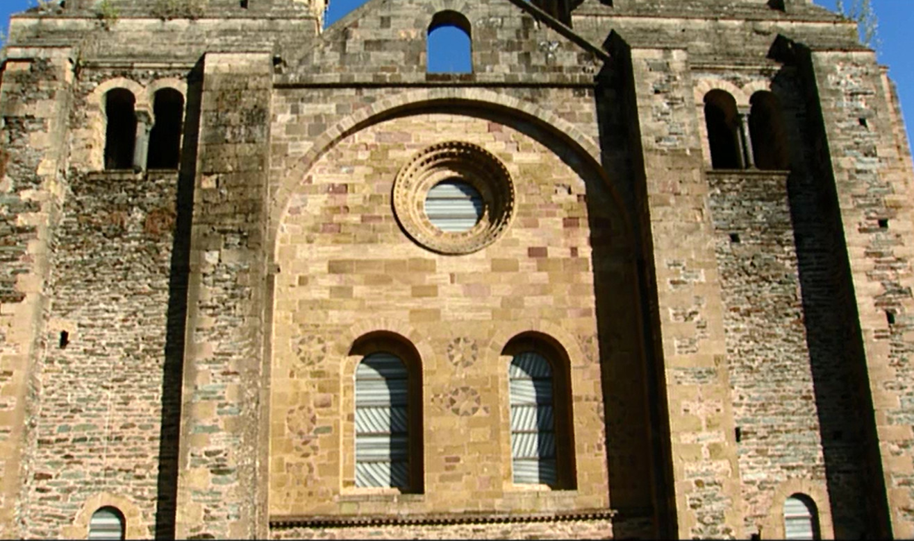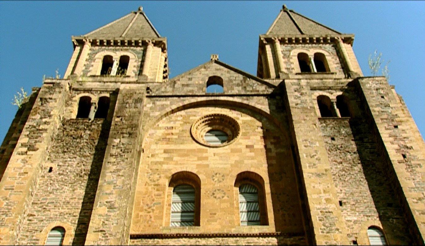 Pas d’architecte connu ni de projet écrit pour cet édifice : son plan en croix latine appartient à une tradition héritée du monde antique. Avec la simplicité d’un jeu de construction, une maquette explique à l'écran le système rationnel formé par les piliers, les arcs, les bas-côtés, les tribunes et les voûtes, se répétant travée après travée. Donnant les clés de cette structure qui permet de gagner en hauteur et en lumière, Neumann suggère par ces images la volonté de dépassement qui anima le chantier. Dans la clarté des vitraux de Soulages (posés en 1994) ou la lumière dorée du couchant, sont débusqués les décors sculptés, chargés de symboles et toujours asservis à la structure architecturale. Tandis que les trois tours de l’église s’imposent comme des signaux dans la vallée verdoyante, le réalisateur évoque le cheminement des pèlerins venus implorer la sainte aux reliques miraculeuses.