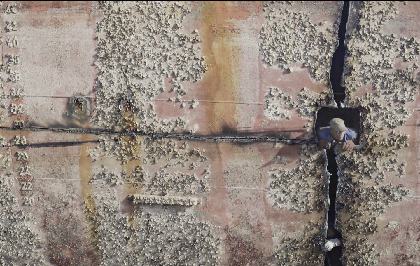 Abisal, troisième sélection au festival Visions du Réel pour le jeune Cubain Alejandro Alonso, construit patiemment une étrange atmosphère où rien ne semble incongru, sans que rien n’y soit vraiment familier. Au grand jour, les corps des ouvriers en combinaison de travail se confondent avec les débris des carcasses rouillées. Dans l'obscurité du dédale des coursives intérieures, les silhouettes se découpent à la lampe torche et l'on bascule dans l'irréel, là où le Bien et le Mal coexistent et où les morts sont évoqués avec déférence. La traque d'un pigeon égaré devient film d'épouvante et la trouvaille d'un journal panaméen est presque un trophée archéologique. Dans ces clairs-obscurs léchés sur une trame sonore inquiétante, les échanges entre les hommes sont d'autant plus sibyllins, des histoires propices à se faire peur, racontées avec le plus grand sérieux. Si l’un peut voler comme Superman, l’autre peut respirer sous l’eau, mais "celui qui ne rêve pas quand il dort, il est mort".