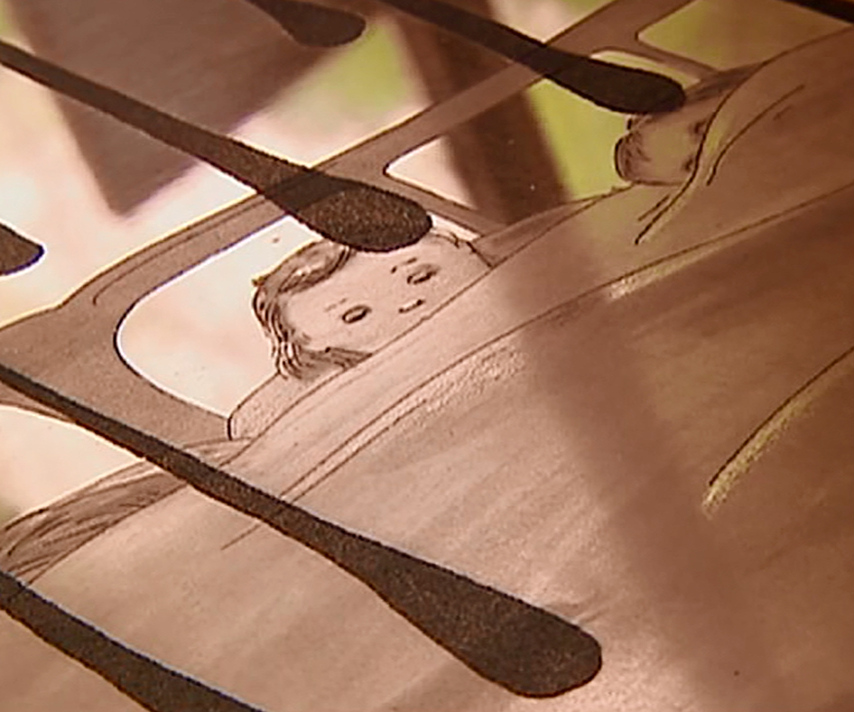 9. René Tazé, taille-doucier, graveur d'art. Il pratique différentes techniques de gravure en creux, l'eau-forte et l'aquatinte. Il en montre les différentes étapes jusqu'à la presse, d'où vont naître les estampes en plusieurs exemplaires de plasticiens tels Miquel Barcelo ou Yang Pei Ming. L'artiste Françoise Petrovitch montre l'élaboration de la gravure en taille-douce à partir d'un de ses dessins : à la pointe, elle incise le vernis dont une plaque de cuivre a été enduite. Puis René plonge la plaque dans un bain d'acide qui attaque le métal en le creusant là où il a été dénudé. Tous deux, penchés sur la presse, commentent le résultat. Pour obtenir des masses nuancées, proches du lavis, le graveur utilise l'aquatinte : dans une sorte d'armoire, une poudre de résine se dépose sur une plaque de cuivre qui y a été entreposée. Celle-ci est ensuite chauffée au chalumeau pour fixer les grains. L'acide mordra autour de ces points de résistance, attaquant le métal protégé ailleurs par du vernis. Une fois rincée et séchée, la matrice est prête à être encrée au rouleau. Tout l'art consiste à essuyer plus ou moins le surplus d'encre pour moduler l'intensité des teintes à l'impression.