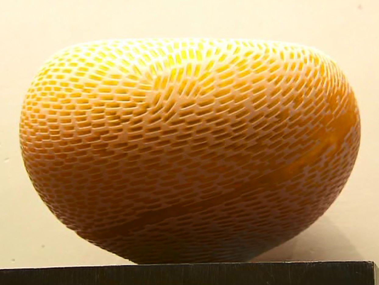 10. Xavier Le Normand, artiste verrier-souffleur. Il crée des pièces massives en verre, jouant sur les rondeurs et les strates de couleur, d'où émane une certaine sérénité qui contraste avec leur fabrication, complexe, physique et risquée. Dans son atelier à Montreuil qu'il partage avec un serrurier d'art, il veut faire évoluer le métier et l'ouvrir à de multiples expériences. Formé près de Nancy, ville de Gallé, puis en résidence au Canada et au Japon, il nourrit son inspiration de l'échange des savoir-faire. Pour nous le prouver, nous assistons à la naissance d'une création commune avec ses compagnons d'atelier : une élégante boule de grillage à plaquettes d'acier attend d'être remplie d'une bulle de verre soufflé dans les tons rouges. Le principe existe dans certaines traditions, mais ce qui est nouveau, c'est le découpage complexe de l'armature qui rend l'opération hasardeuse. Il faudra une chorégraphie orchestrée avec minutie, canne à la main et au bec, pour que la pâte de verre en fusion, roulée et allongée, puisse pénétrer dans la boule et la remplir.