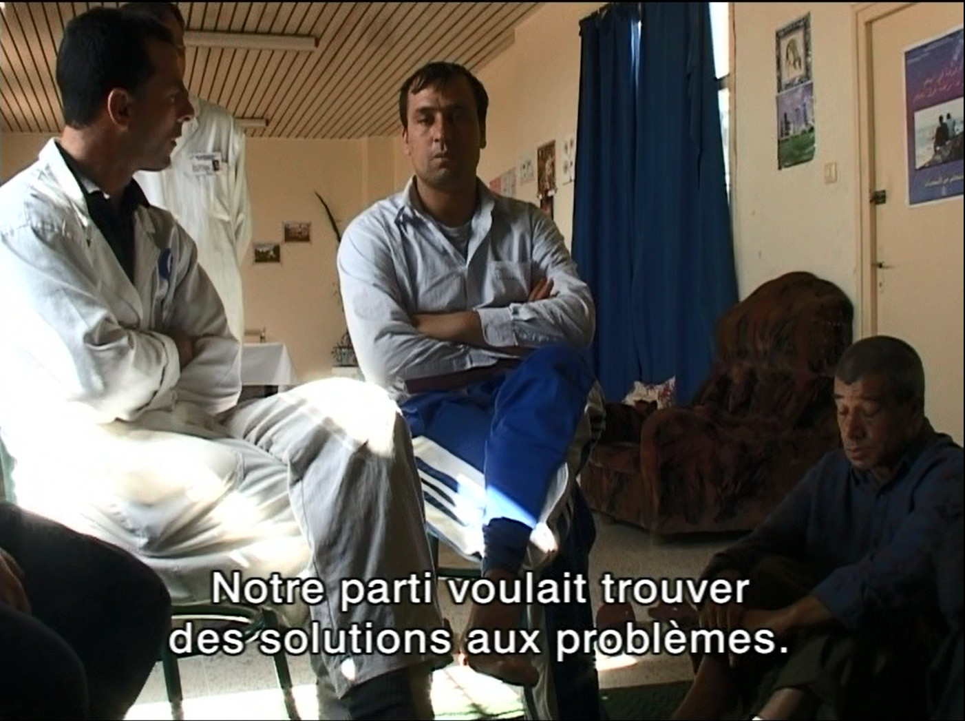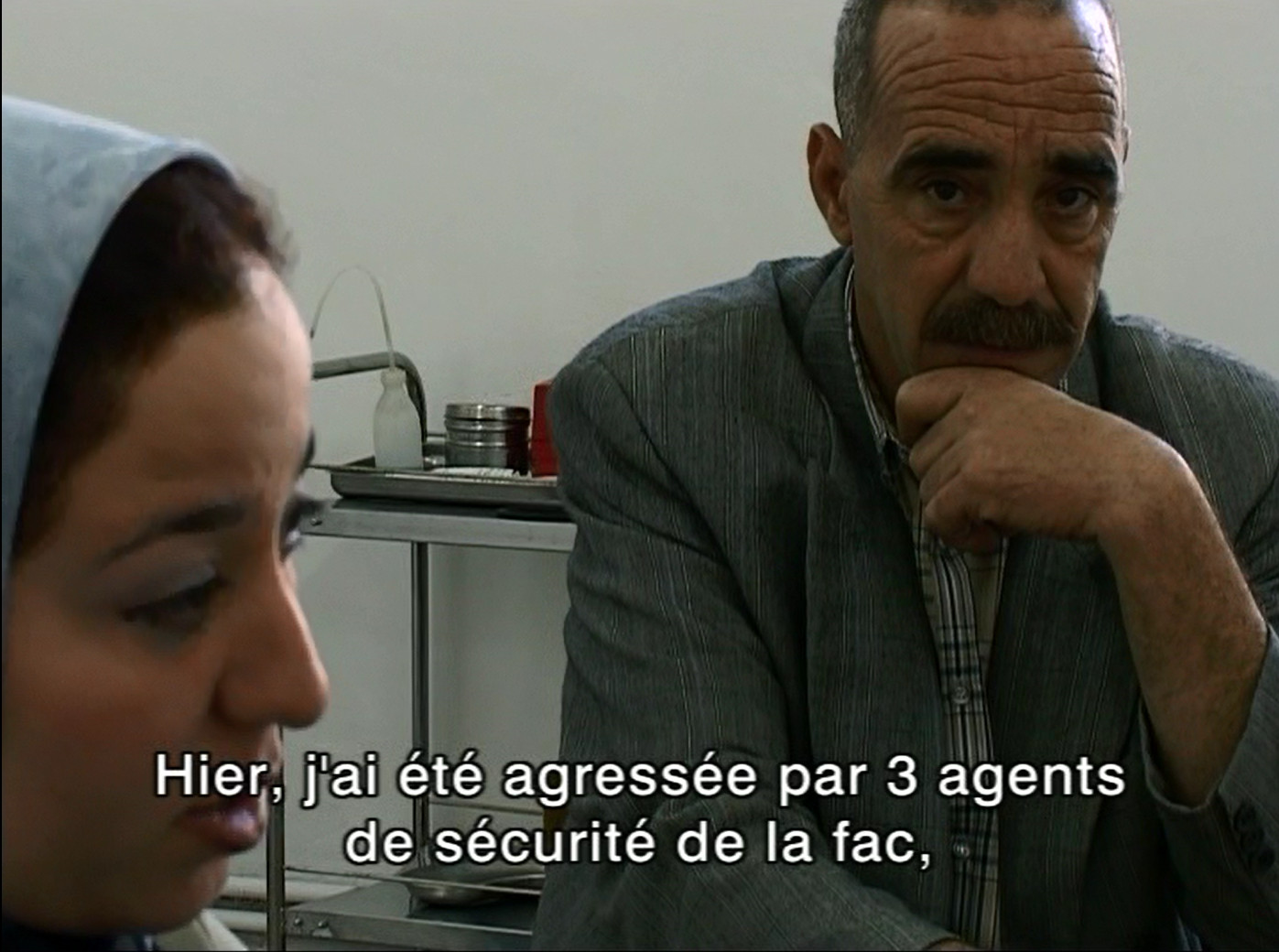 De la colonisation aux années de terrorisme islamique, l’Algérie n’a cessé d’en affronter les séquelles et ses retombées. En filmant l’interactivité soignants soignés, Bensmaïl révèle la souffrance mentale de la société algérienne et pointe, à travers les patients héros du film, le drame individuel d’hommes et de femmes prisonniers de leurs obsessions, les drames collectifs des victimes d’une société irrespectueuse de l’individu, de ses droits comme de ses libertés, et le scandale de la condition féminine. Scandale, surtout, car l’hôpital devient le seul lieu pour se délivrer de toutes ces injustices. Dans cette cacophonie ambiante, la langue cristallise tous les maux : “Le berbère a été déclaré langue officielle au prix de luttes sanglantes ; l’algérien, langue particulièrement vivante, innovante et parlée par tous, n’est toujours pas reconnu ; le français est usité par un quart des Algériens, et l’arabe classique est dévolu au pouvoir et ses institutions.”