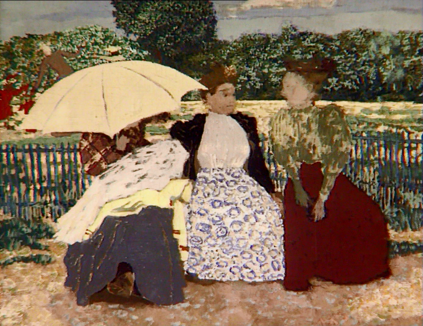 Le réalisateur dresse un portrait rapide d'Edouard Vuillard (1868-1940) et analyse minutieusement l'ensemble des panneaux conçus dans l'esthétique nabis et peints à la colle. Il les replace dans la pièce qu'ils devaient décorer et recolore un des panneaux disparu pendant la guerre, en se basant sur les indications de couleurs d'une ébauche et sur les panneaux voisins peints en continuité. Les Jardins publics restituent le monde de l'enfance. Ils sont la peinture sage d'un monde apparemment paisible. Mais en bordure, tout se trouble : sous-bois sombres, allées énigmatiques, personnages bizarres. Car le jardin n'est-il pas le premier espace d'aventure où se perçoit de loin, l'ambiguïté menaçante du monde ?