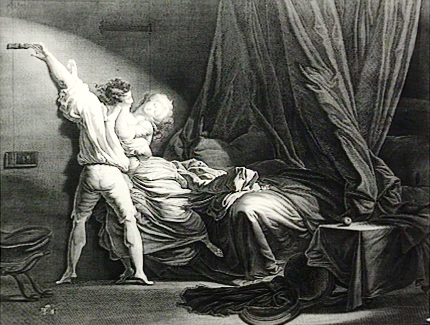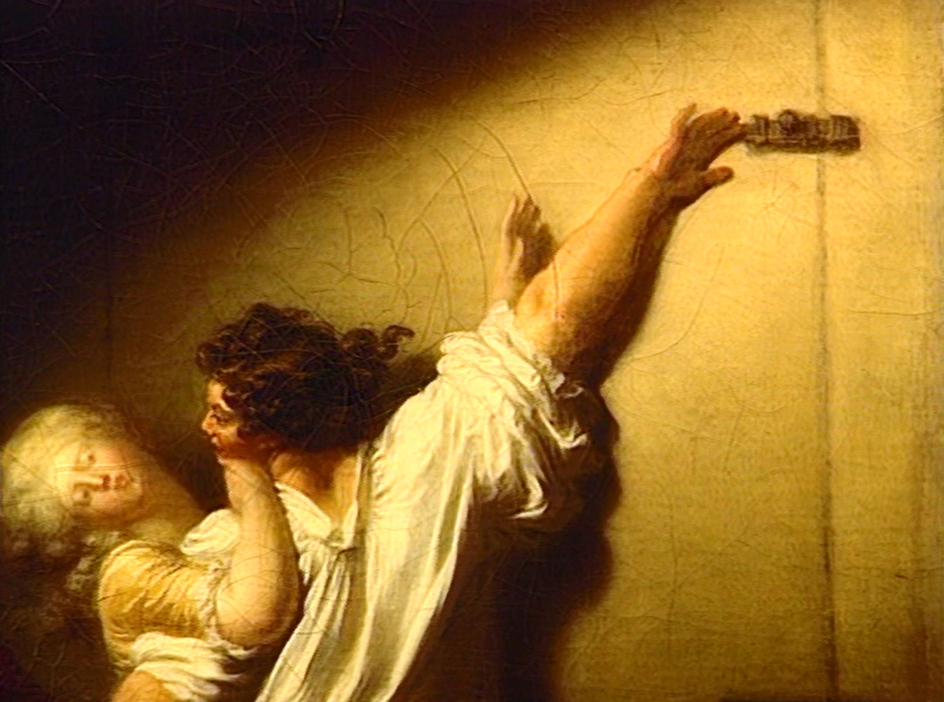 Fragonard place Le Verrou, peint vers 1776, sous le signe de la séduction. Séduction de son thème osé qui narre l’ultime et frêle résistance d’une belle enflammée d’amour, et séduction de sa touche déliée et de sa palette chaude, dominée par le jaune de Naples que l’artiste goûtait tout particulièrement. Succès immédiat : les gravures se multiplient, fidèles ou très librement inspirées du tableau.