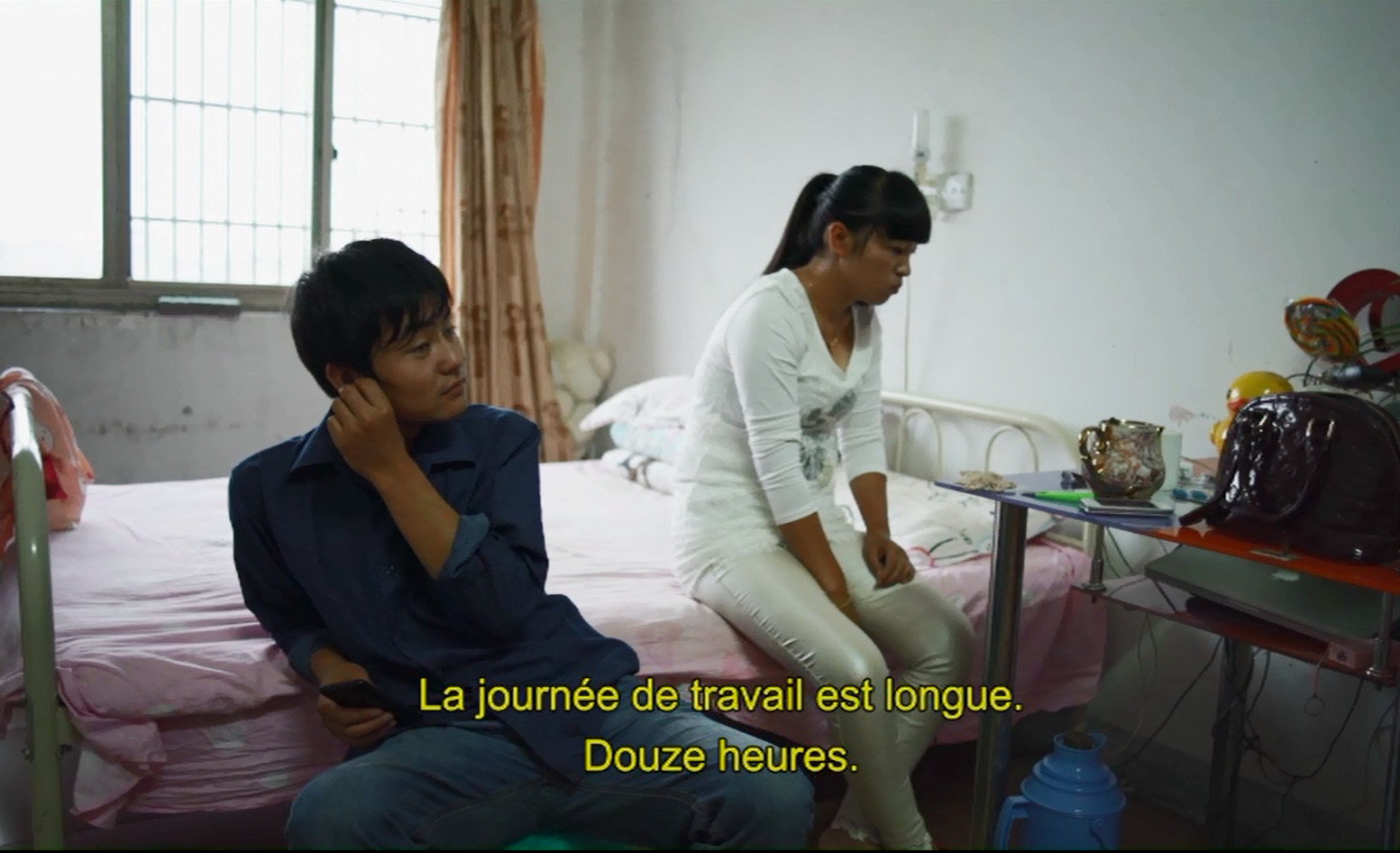 Au départ, il y a le déracinement de cette jeune fille de 15 ans dont sa famille débat afin qu’elle rapporte de l’argent. D’autres comme elle prennent le train, déjà épuisés par le trajet qui les porte vers la promesse de cet Eldorado. La caméra capte le voyage que représente cet éloignement par des plans longs et l’impression de se fondre dans l’environnement. Le réalisateur saisit les enjeux intimes, tenant toujours la bonne distance, en suivant ses personnages dans leur quotidien : à l’usine, dans leur chambre, dans la rue. Émergent de précieuses confessions de solitude, la dureté des rapports sociaux, la misère dans laquelle les jettent les abus subséquents au droit du travail battu en brèche. Ce qui trouble, c’est sans doute la nécessité pour ces personnes de s’exprimer, à l’instar de cette femme nous interpelant : "Suis-moi" dit-elle, nous menant de nuit dans les ruelles voir le mari qui la rejette et la frappe sans qu’on en connaisse la raison. De ce réel, Wang Bing révèle les affres de la dérégulation économique qui empêchent toute cohésion sociale, en incriminant un système moins que les individus.