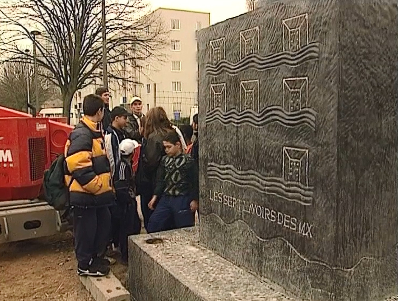 Pour désenclaver les quartiers HLM, faire se rejoindre les zones anciennes et nouvelles, la municipalité a choisi le projet ambitieux de Françoise Jolivet : une bande rectiligne de granit rouge au sol, bordée de petits pavés de marbre blanc, jalonnée de places, d'aires de jeux, de jardins et de sculptures perchées sur de hautes colonnes. Bien que financé en majeure partie par l'Etat, la Région et la Communauté européenne, ce geste architectural va déclencher dès sa mise en oeuvre une polémique telle que, huit ans plus tard, un peu plus d'un kilomètre seulement a été réalisé. Les habitants interrogés, focalisés sur les problèmes liés au chômage ou à la délinquance, restent dubitatifs, quand ce n'est pas l'élu Front national qui monte au créneau en conseil municipal. Envers et contre tout, l'artiste arpente la cité, écoute, explique et convainc. Mais la revalorisation de l'image du quartier suffira-t-elle à atténuer le malaise banlieusard ?