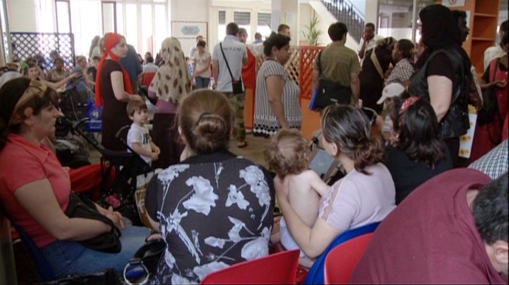 Centré sur quelques personnages bien choisis, deux assistantes sociales, cinq familles d’immigrants (Mongoles, Erythréens, Roumains, Somaliens et Sri-lankais), le film de Claudine Bories et Patrice Chagnard scrute le théâtre qui se joue dans les bureaux exigus de la CAFDA (Paris 20e). Chacun reste prisonnier de son rôle. Pris dans l’urgence, ces arrivants ne demandent d’abord qu’un abri où se poser, se nourrir, éventuellement accoucher. Les accueillants, eux, se débattent dans un système administratif plein d’injonctions contradictoires : ils doivent à la fois secourir (dans les limites d’un budget très insuffisant) et éconduire, conseiller et admonester, expliquer aux demandeurs d’asile leurs droits et décourager les demandes abusives. A l’envers d’un propos militant, le film ne jette pas d’anathème mais montre la complexité d’une situation inextricable, où des êtres humains, ni tous bons, ni tous mauvais, sont pris au piège d’un système inhumain.
