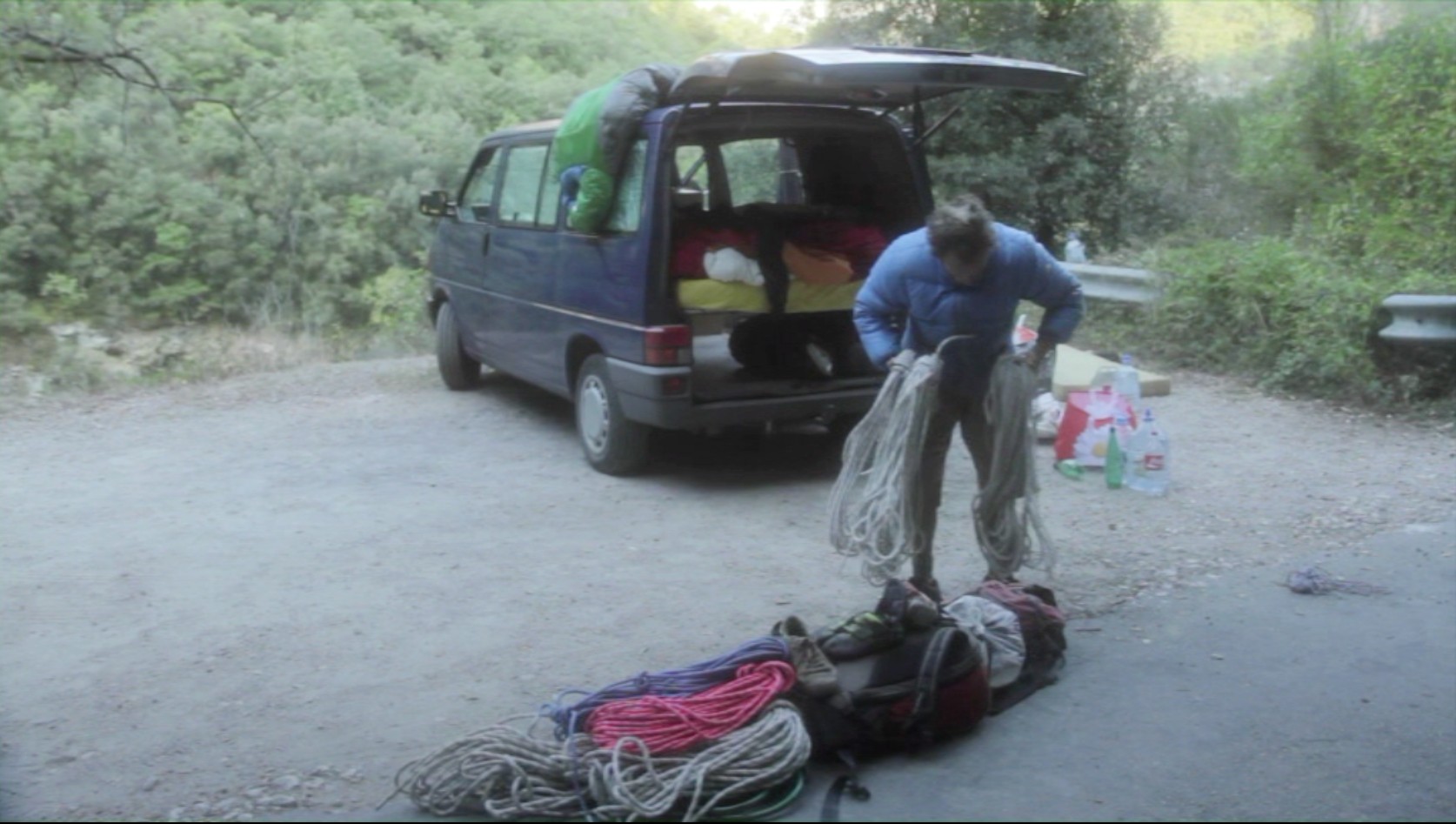 Avec une lenteur assumée et une grande économie de paroles, le film donne à voir les coulisses de l’exploit sportif. François Pomart et Jean Bidanel se déplacent à bord d’une camionnette dans un paysage sauvage et quasi désert. Les nuits sont fraîches et les matins glacés. Plus que la beauté de la nature, ce qui attire les deux amis ce sont les difficultés à surmonter. Leurs rares dialogues tournent autour de la technique de l’escalade ou de l’encordage. Silencieux, concentrés, obstinés, ils multiplient les tentatives sans jamais se décourager. La fin du film rompt le huis clos fraternel entre les deux sportifs et l’on découvre François dans un autre rôle. Guide de canyoning, il emmène dans les gorges du Verdon un groupe de touristes lourdement équipés de protections (casques et combinaisons) et leur enseigne avec patience à se jeter du haut d’un rocher au fond d’un torrent bouillonnant.