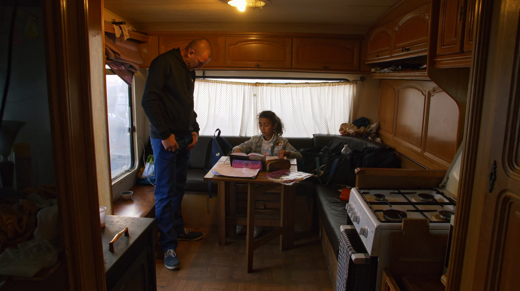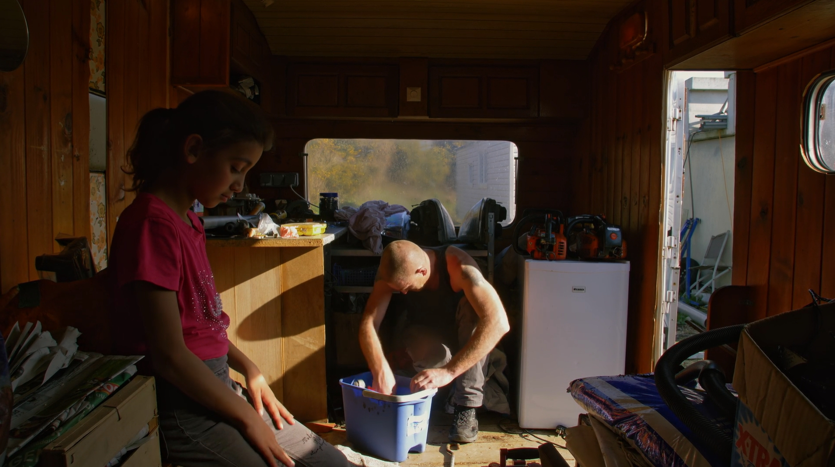 Son débit est rapide et sa jambe bouge en permanence : Francki est un nerveux et a du mal à tenir en place. S’il est à l’aise quand il répare des voitures, fait des chantiers ou délivre des conseils à des apprentis boxeurs, il l’est en effet beaucoup moins quand il s’agit de rester immobile et en particulier d’étudier. Un concours de formateur de boxe lui semble ainsi inaccessible, alors même qu’il a toutes les connaissances nécessaires. Il se considère comme inadapté et dit être « le bas du peuple ». Entre reprendre la route et scolariser sa fille, il hésite : faut-il que sa fille suive le destin familial ou doit-il l’aider à s’adapter aux codes du système dont il a si peur d’être prisonnier ? La question se pose à tous les âges : alors que Francki a construit une belle terrasse pour son père, William regrette la simple caravane qui lui donnait l’illusion de partir quand il le voulait. Dans un monde où tout pousse à se sédentariser, comment continuer à cultiver son identité ?