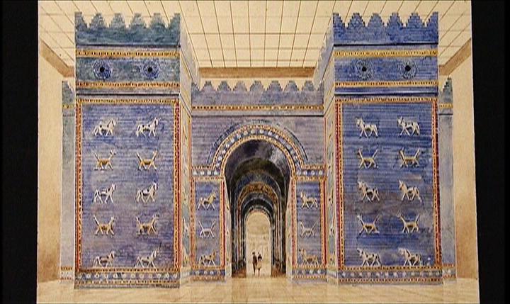 Pour les Occidentaux, Babylone incarne à la fois la fascination et la répulsion de l'Orient, ville biblique maudite de tous les vices en période de crise, référence urbaine magnifique en temps de prospérité, avec sa tour, symbole tantôt d'orgueil châtié, tantôt de solidarité. C'est ce monument mythique qui a motivé les recherches archéologiques, restées vaines jusqu'aux découvertes allemandes promues par l'empereur Guillaume II. Seules les fondations ayant été retrouvées, on évalue la hauteur de cette ziggourat à 90 mètres. La civilisation mésopotamienne a inventé l'écriture, et des milliers de tablettes d'argile gravées nous transmettent 2000 ans de culture pluridisciplinaire. La stèle d'Hamurabi (Louvre) est le premier code pénal complet du monde. Les Irakiens se sentent héritiers de cette richesse intellectuelle et artistique, et comme l'héroïne de ce documentaire, ils éprouvent une émotion intense devant la colossale Porte d'Ishtar aux animaux polychromes du musée de Berlin.