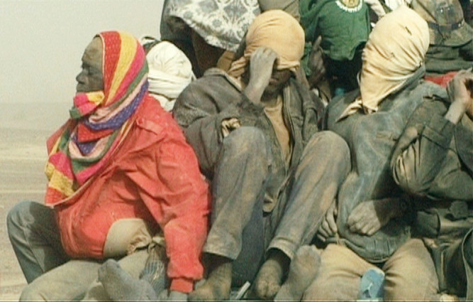 Des femmes, des enfants et des hommes ; de simples piétons chargés de leurs bagages ou des automobilistes à proximité de leur voiture à l'arrêt. Pour tuer le temps de l'attente, tous discutent, jouent, dorment, prient, mangent, bricolent leur véhicule ou arrangent leur chargement. Dans une forme stylisée, Randa Maroufi saisit les pulsations du poste frontière de Bab Sebta (La Porte de Ceuta), où les voyageurs venant du Maroc attendent pour rentrer en Espagne.