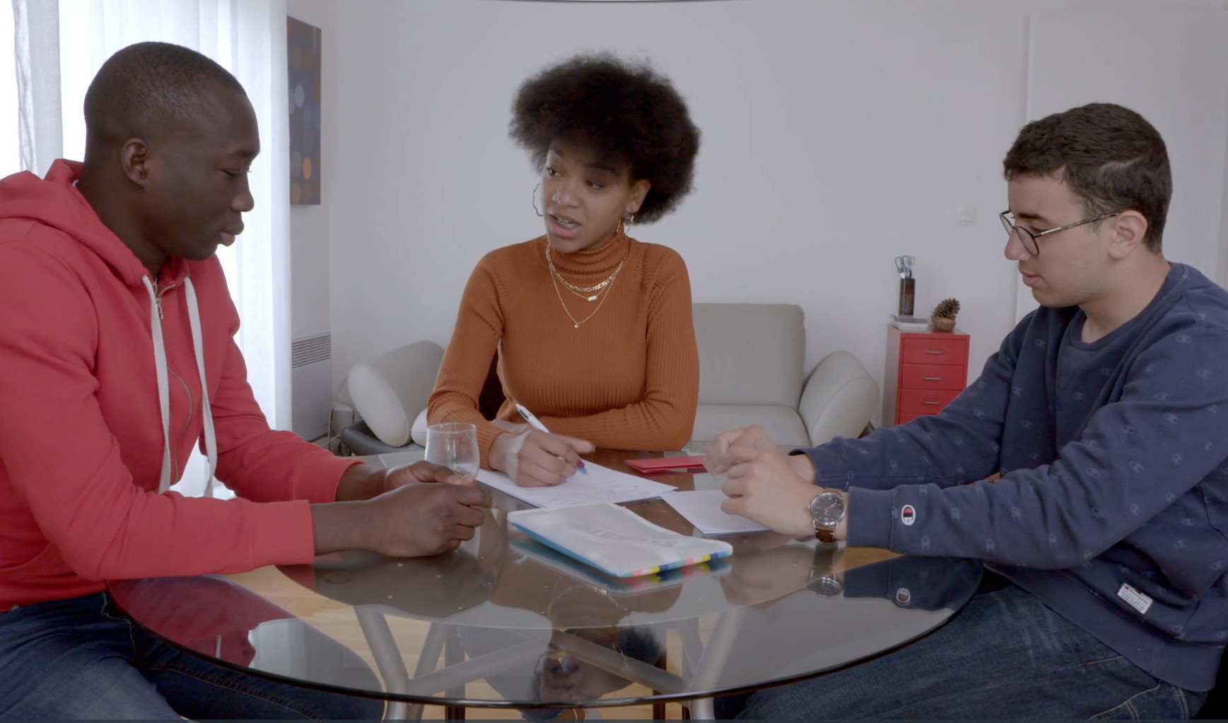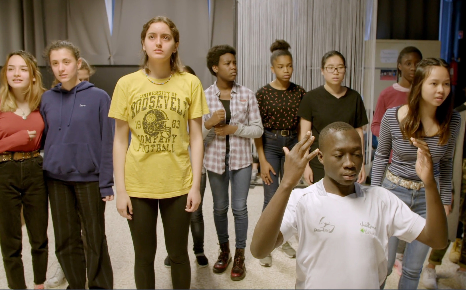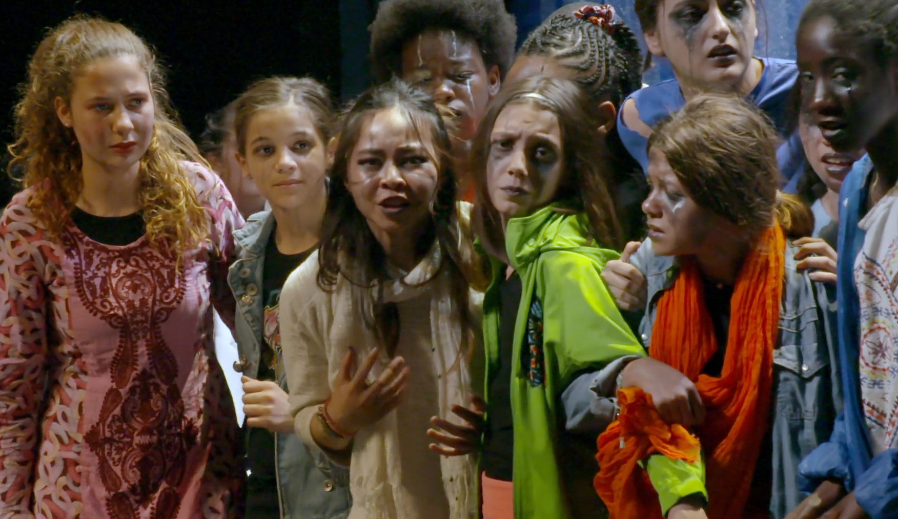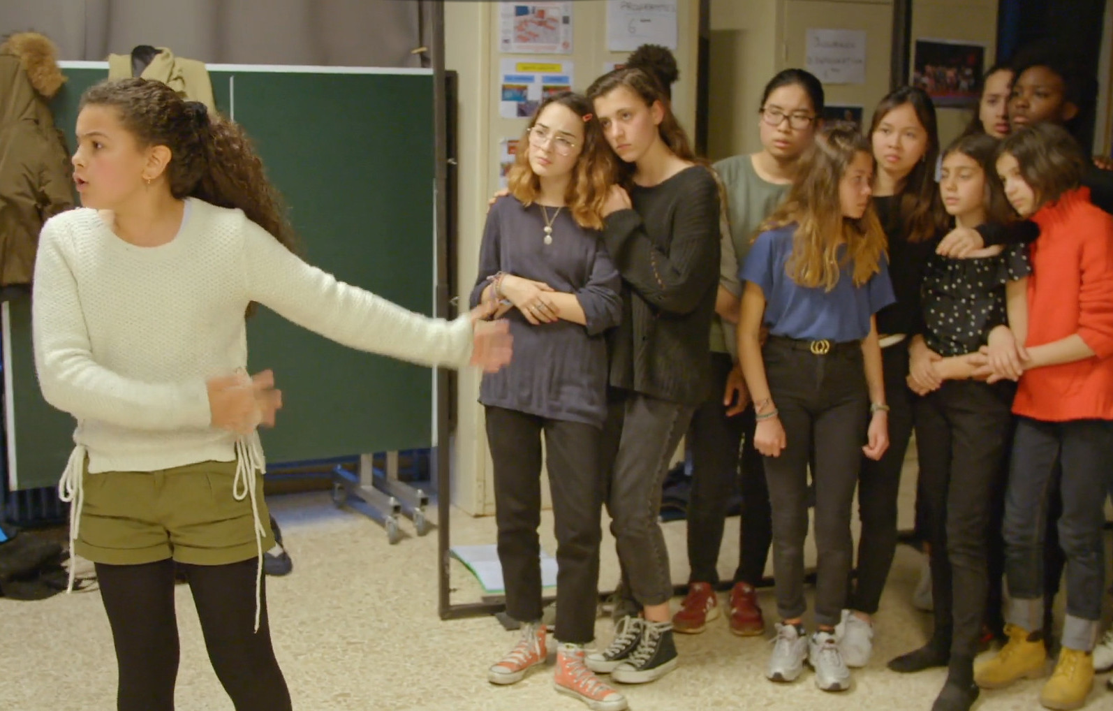 Des Égyptiennes fuyant la persécution implorent l’hospitalité des Grecs. Tel est l’argument de la tragédie. Le trio d’enseignants place la barre très haut. Pour s’approprier ce texte au premier abord inaccessible, les adolescents mobilisent leurs ressources personnelles, mettent à profit l’expérience de leurs proches, s’informent. A l’image du quartier, ils sont très divers par leurs origines. Du travail, des répétitions, naît une troupe. Le film accompagne cette mue à la fois individuelle et collective. Une jeune fille devient chorégraphe, un écrivain en herbe devient auteur. A l’évidence, certains qui ont enduré l’extrême cruauté ou l’ont côtoyée de trop près - un jeune exilé Africain, une lycéenne d’origine cambodgienne dont les parents sont rescapés du génocide - s’épanouissent dans l’interprétation de rôles de fiction. Le chemin qui les conduit tous à la représentation publique sur la scène du Théâtre de l’Odéon est celui d’une affirmation et d’une émancipation.