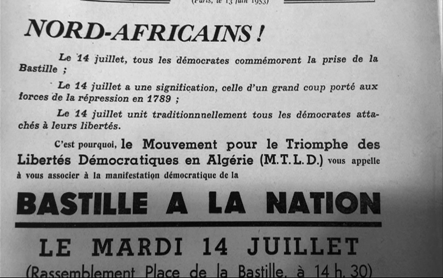 Le 14 juillet 1953, au moment où la manifestation parisienne se disperse, la police tire sur un cortège de nationalistes algériens causant 7 morts et plus de 60 blessés. Face au parti communiste, organisateur de la manifestation, qui dénonce cette tuerie, les autorités invoquent la légitime défense. Les victimes, six Algériens et un Français, seront vite oubliées et les familles n’obtiendront jamais réparation, ni en Algérie, ni en France.