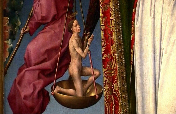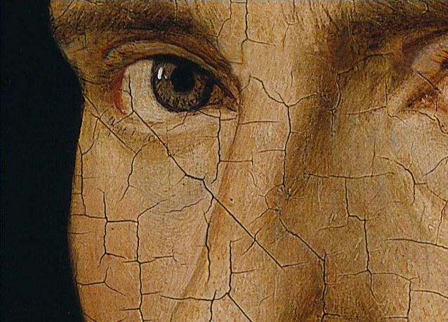 Le commentaire en voix off décrypte quelques œuvres maîtresses de Robert Campain (1379-1444), Jan Van Eyck (1390-1441) et Rogier Van der Weiden (1399-1464). La Nativité de Campain (1425) surprend par sa simplicité : Marie, privée d’auréole, met au monde un enfant malingre. Désormais, le portrait n’est plus l’apanage des souverains : Le Mariage Arnolfini de Van Eyck (1434) magnifie avec un luxe de détails l’ascension bourgeoise. Pour rendre compte de cette sécularisation, le film ébauche une histoire intellectuelle du Moyen Âge, de Thomas d’Aquin à Dunscot, et évoque l’époque à grands traits (Azincourt, Jeanne d’Arc, chute de Constantinople) en s’appuyant sur une iconographie variée (Les Très Riches Heures du Duc de Berry), mais aussi des citations de films (Feuillade, Painlevé, Alice Guy, Rouquier ou Laurence Olivier). En revanche, ce sont des prises de vues contemporaines qui évoquent la ville de Bruges, le commerce d'épices et les artisanats qui firent jadis son orgueil.