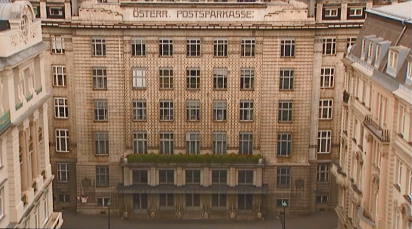 Otto Wagner (1841-1918), interprète de l'architecture historiciste de la Renaissance pour la grande bourgeoisie de l'ostentatoire Ringstrasse en construction, se convertit tardivement à l'architecture moderne. Sa réputation de construire vite et à moindre frais des bâtiments monumentaux (brique et placage de fines dalles de marbre) et faciles à entretenir (aluminium, linoléum) lui permet de remporter le concours de la Caisse d'épargne. Ce projet moderniste d'une architecture nue et transparente (le hall de verre de la salle des guichets) a-t-il pu servir le projet des commanditaires ? Les milieux populistes et catholiques soutenaient le petit épargnant, en opposition au style opulent et traditionnel de la banque libérale, juive et cosmopolite.