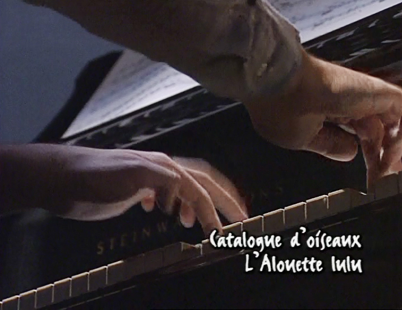 3. Les Couleurs, les rythmes, l'enseignement. Quand Messiaen prétendait voir des couleurs alors qu'il entendait des sons, il précisait qu'il s'agissait de "couleurs de musicien" et non de "couleurs de peintre". Dans cette dernière partie, Olivier Mille tente de percer le mystère de ces fameuses couleurs musicales, rythmes d'une précision diabolique, et présente un Messiaen pédagogue, éveilleur de nouvelles générations de musiciens. Le mystère des couleurs est un autre pôle déterminant dans l'oeuvre du compositeur. Messiaen se qualifiait lui-même de musicien "coloré" lorsqu'on tentait de le rattacher à un mouvement. Lors d'un cours d'analyse musicale donné au Conservatoire de Paris, il fait une démonstration convaincante de la correspondance des harmonies et des couleurs chez Debussy. François-Bernard Mâche, qui fut un de ses élèves, avoue que cet "excès d'imaginaire" était parfois difficile à suivre. Que ce soit en transposant de minuscules différences rythmiques de la vie ou en faisant passer le chant de la nature dans sa musique, Messiaen est parvenu à un équilibre parfait entre rêve et pensée logique.