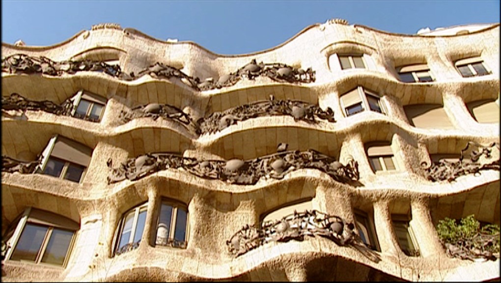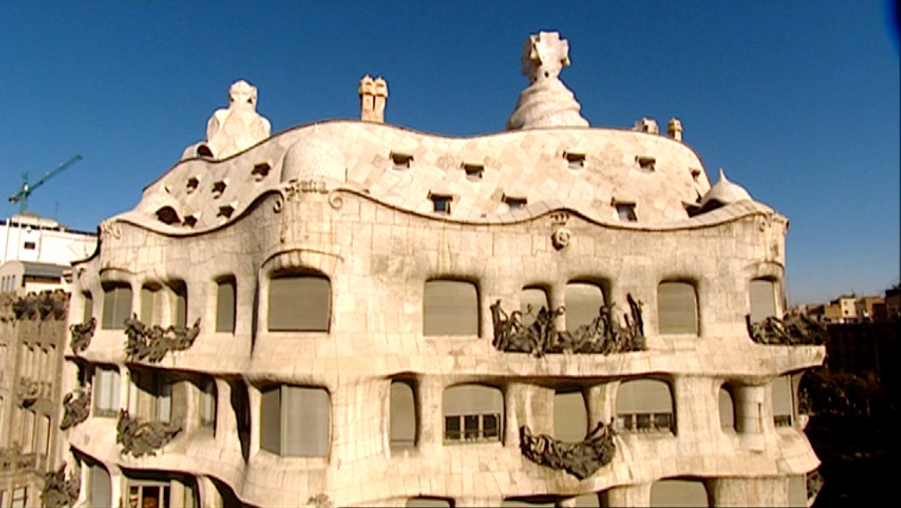 Avec sa dernière œuvre civile, édifiée à partir de 1906 dans une riche avenue, Gaudi va au bout de la déstructuration d’une architecture fondée sur la ligne et l’angle droit. Passionné d’anatomie, il envisage l’immeuble comme un corps revêtu de peau, dont les pierres forment la chair et les piliers, l’ossature ; ce sont eux qui assurent la stabilité en laissant toute liberté d’onduler aux façades. Deux patios intérieurs, l’un circulaire et l’autre ovale, structurent le bâtiment. Le premier étage est entièrement consacré à l’hôtel particulier des Milá, tandis que les suivants comptent chacun quatre appartements, tous différents. Sur la terrasse, supportée par une voûte de 270 arcs paraboliques en brique, se dressent les formes singulières et fantastiques des cheminées, solitaires ou en bouquet. L’aspect organique de cette immense sculpture de pierre, dédiée à la Vierge du Rosaire, se manifeste jusque dans les détails, fers forgés des balcons ou plafonds sculptés des logements.