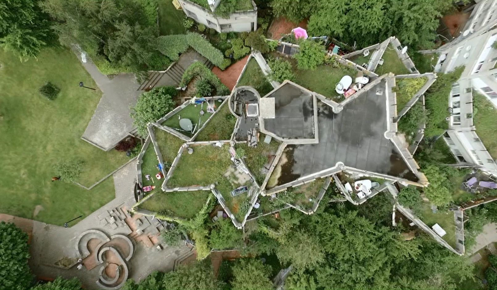 Construite à la fin des années 1970 par l’architecte Renée Gailhoustet à Aubervilliers, la Maladrerie est un ensemble d’habitat collectif doté de formes angulaires atypiques et de jardins suspendus. À travers les chants de ses habitants et le cheminement des enfants dans les espaces communs, Flavie Pinatel ravive l’utopie de cette architecture, pensée comme un contre-modèle des grands ensembles.