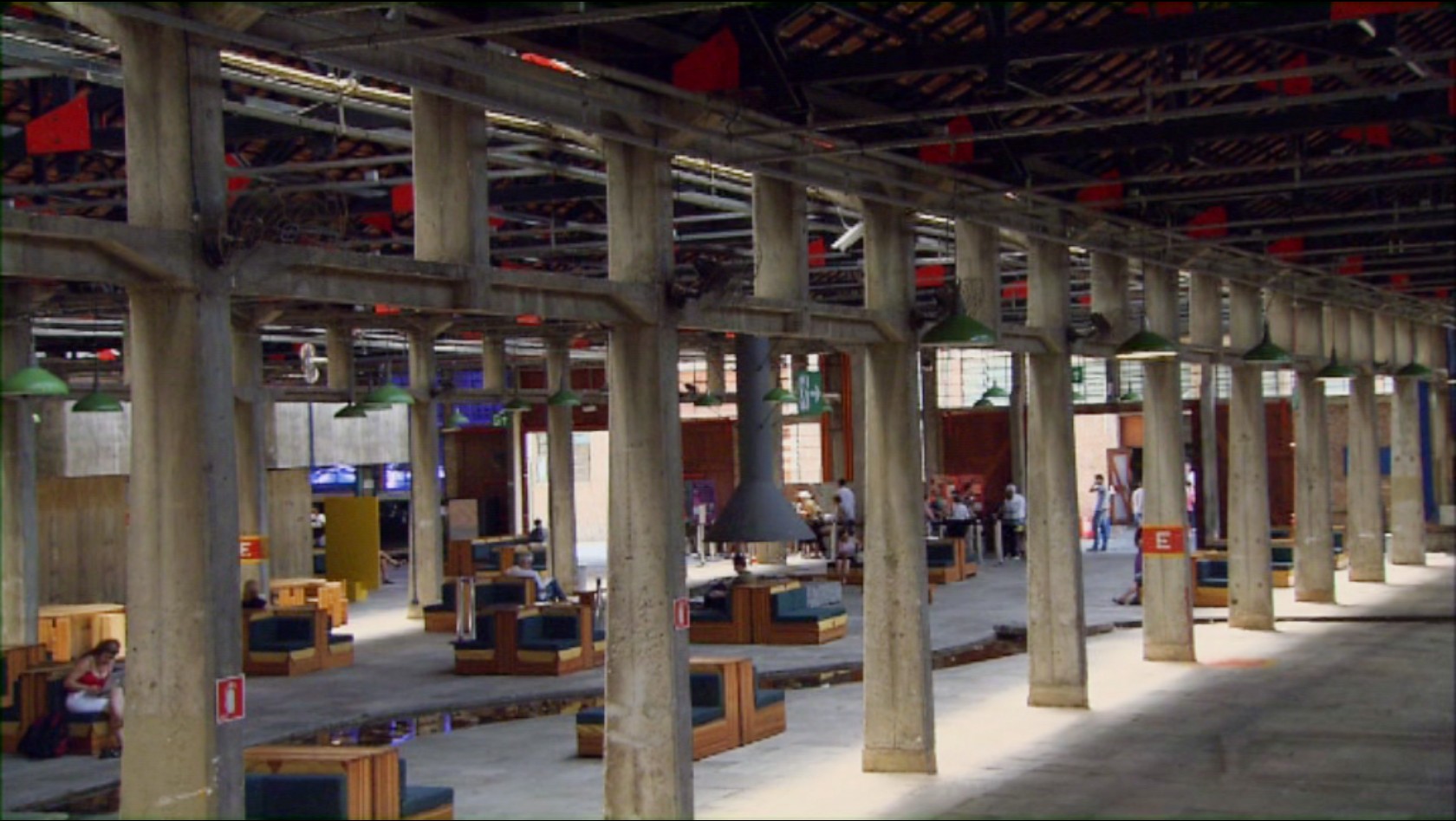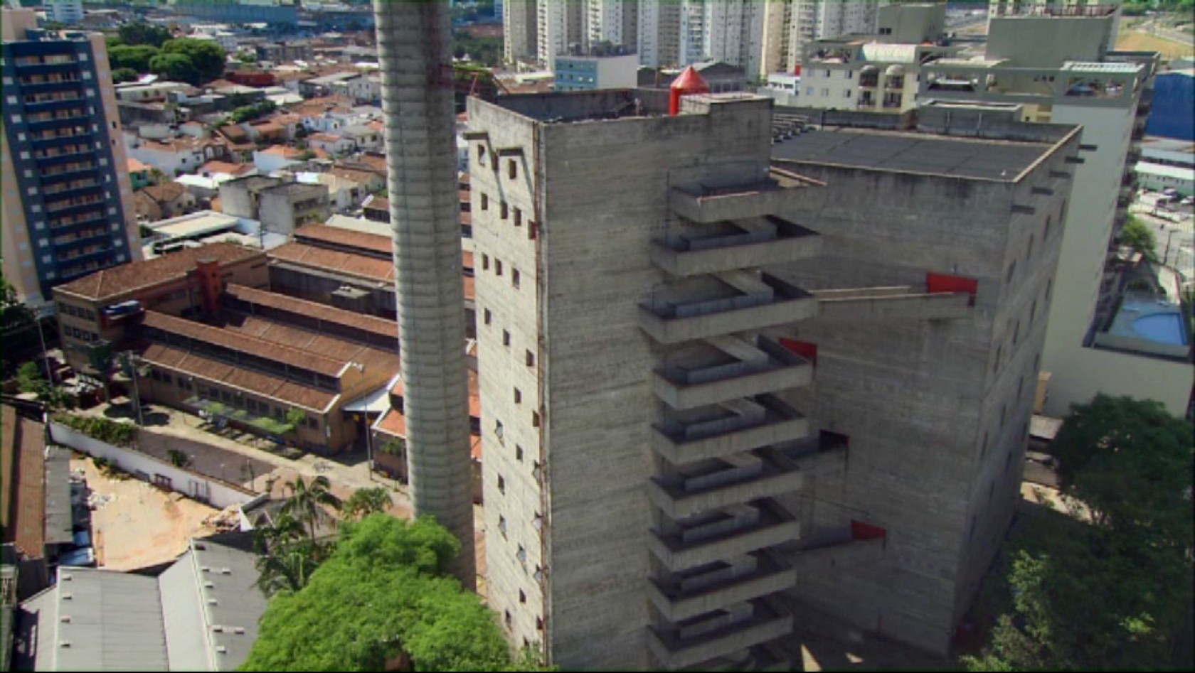 Le bunker de Pompeia est enfoui dans la forêt verticale des tours d’habitation du quartier populaire de Palmeiras : trois hauts blocs viennent toiser une ancienne usine, à l’intérieur de laquelle un curetage soigné a mis à nu une structure de poteaux en béton et dégagé des travées de 400 mètres de long. Celles-ci sont fragmentées par de simples terrasses de béton en hauteur, et accueillent bibliothèque, théâtre, ateliers, cantine, salles de lecture... Lina Bo Bardi invente donc un espace fluide, sans cloison, où un paysage d’eau et de pierres sert d'écrin à des fauteuils en bois modulables. Ce lieu de grande convivialité voisine avec les bâtiments en hauteur qui abritent, à chaque étage, un équipement sportif différent. Ces blocs de béton brut sont reliés entre eux par des passerelles à l’air libre ; leurs façades sont découpées par des cavités aux formes libres et organiques et témoignent d’un geste brutaliste. Une architettura povera qui crée de puissants effets visuels.