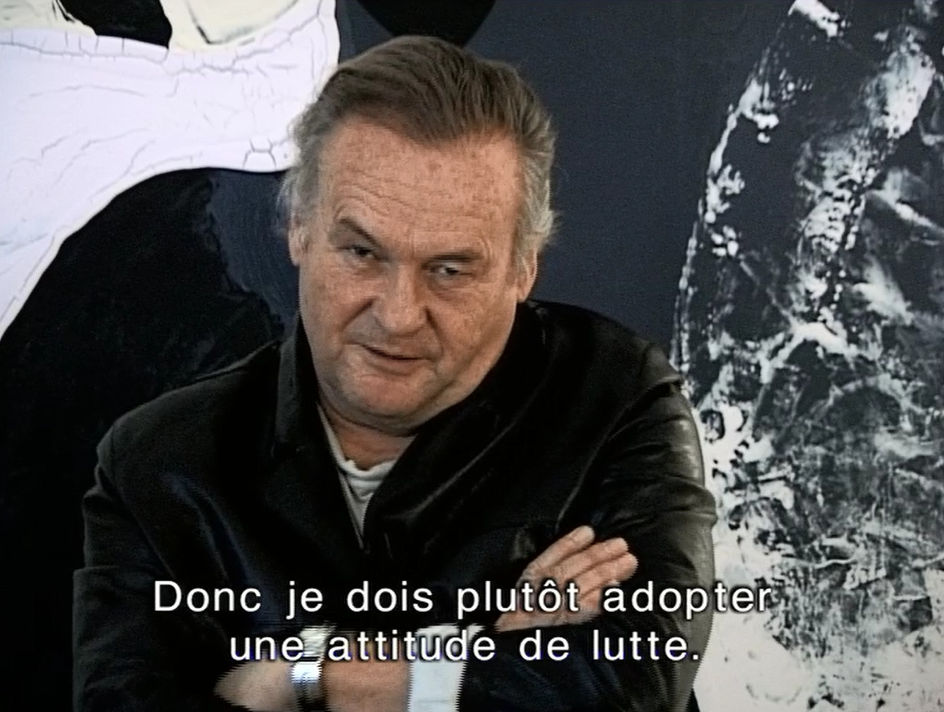 Si l’entretien n’aborde pas la question de l’exil, elle le vêt néanmoins d’un voile d'un noir identique aux toiles du cinéaste, découvertes en fin de documentaire dans une exposition. L'œuvre multiforme de Skolimowski (né en 1938) n'est pas pour autant tournée vers la mort ; à l’image de Jeremy Irons, qui se démène pour manger à sa faim dans Travail au noir (1982), l'artiste décrit avant tout sa lutte pour exister. Avec cet ancien boxeur, la métaphore est souvent sportive. Il évoque ainsi le combat mené contre son côté sombre et la vie qui court trop vite : très beau, ce moment où il se met en garde, les poings serrés, et regarde la caméra d’un œil torve. De même, il entend saisir les moments de l'existence où tout peut encore basculer. Pied de nez au critique du New York Times qui avait éreinté Rysopis en 1965, le documentaire en cite intégralement la séquence la plus polémique, une longue descente dans des escaliers où le personnage peut encore décider de ne pas s’engager dans l’armée.