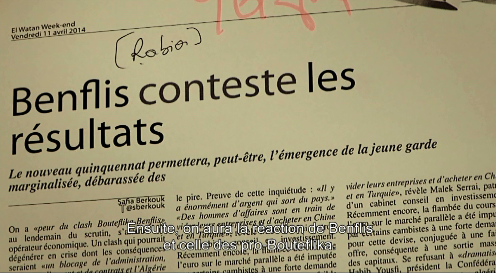 Prises de bec, silences, séances de travail ou franches rigolades, les journalistes soulèvent les interrogations d’une société tourmentée par ses contradictions ; tels Hacène le marxiste, pin’s faucille et marteau accroché au pull, ou Hassan le religieux, sceptique sur le fait que tout changement politique passe par l’instauration de la laïcité. Dans cet entre-deux, Malek Bensmaïl parvient à saisir avec finesse une palette de nuances colorant l’ensemble de l’équipe, dont on perçoit le vécu de chaque individu qui la compose. Au lendemain de l’élection, El Watan titre "Bouteflika élu dans un fauteuil", avec photo à l’appui et score surréaliste. La voix off présidentielle clamant "je suis l’Algérie toute entière et l’incarnation de tous les Algériens", qui faisait l'ouverture du film, a fait place au rythme accéléré des rotatives et du jogging sur tapis roulant du directeur Omar Belhouchet : une course et un combat pour la liberté d’informer, face à un pouvoir et une société sclérosés.