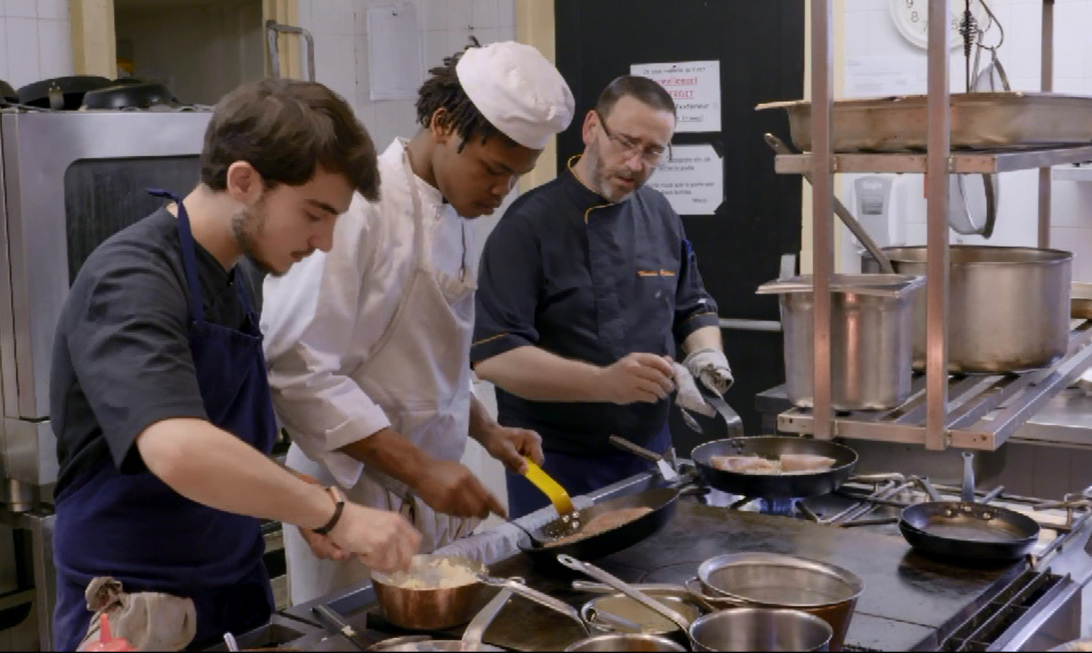 "Ils ont une énorme pression sur les épaules. Ils sont courageux," reconnaît Catherine Grosjean. Avant d'être parachutés à Treignac, Maurice, Abdou, Sidaly, Riju et les autres ont affronté l'épreuve de la migration. "Quand je suis en cuisine, je me sens bien. C’est un travail d’équipe, on est tous solidaires," raconte Maurice. À l'apprentissage du français s'ajoute celui du lexique culinaire. Une gastronomie française très codifiée, un personnel de cuisine très hiérarchisé : les jeunes apprentis découvrent la discipline nécessaire à leur bon fonctionnement. "En Afrique on voit pas les gens qui te crient dessus," remarque Sidaly. Derrière sa rigueur, la cheffe cache une passion inconditionnelle pour ses élèves. Resté en contact avec elle quelques années après, un "ancien" lui confie : "Vous m’avez donné le goût de la cuisine." Lors de stages, les jeunes s’immergent dans les établissements de la région, au contact de commerçants et de restaurateurs. La fin de l'année approche, vont-ils avoir leur diplôme ?