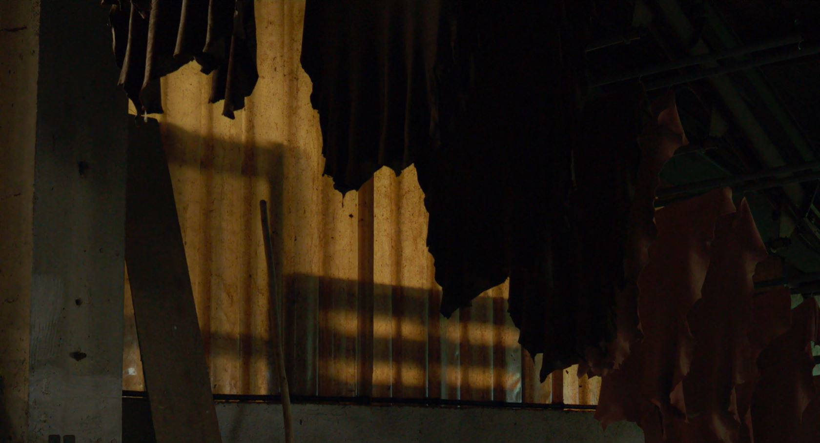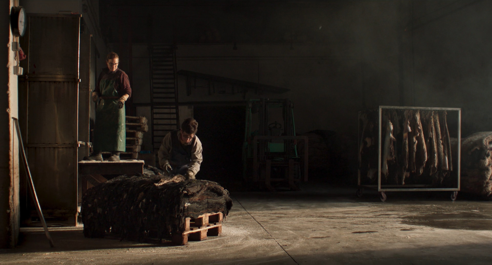La mise en scène par son cadrage, sa lumière, sa photographie hyperréaliste, sa façon de filmer la matière, la peau (animale et humaine), son goût de la nature morte, repousse le documentaire aux frontières de la fiction. Ce parti-pris est relayé par le leitmotiv du personnage de Patricia, une troisième ouvrière qui a disparu mystérieusement et dont on doute de l'existence presque jusqu'à la fin du film . N'est-elle pas la métaphore de l'agonie de cette tannerie qui semble vivre ses derniers moments ?