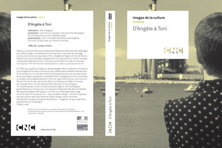 En 1934, peu après que Pagnol a réalisé Angèle, Renoir attaque en Provence le tournage de Toni avec la troupe du plus célèbre des cinéastes méridionaux. Si l’unité de lieu unit les deux récits, les dissemblances ne manquent pas. Alors que Pagnol, guidé par un tempérament nostalgique, filme une société où le père, et plus généralement l’homme, figure dominante, incarne la loi, Renoir filme la fin du patriarcat. Renoir s’intéresse en effet au monde qui change. Ainsi, Toni se déroule dans des lieux mi-bucoliques, mi-industrialisés. Julien, troisième personnage du film de Bergala, guide Nadine sur les lieux qui ont marqué l’imaginaire des deux cinéastes : Marseille, Aubagne, Martigues, La Treille. A ce repérage-pèlerinage d’un film dont on ne saura rien - celui de Marie-Ange - viennent s’ajouter les discussions des deux femmes. Marie-Ange, la bien nommée, semble avoir quelque chose à transmettre - angelos, en grec, signifiant précisément le messager.