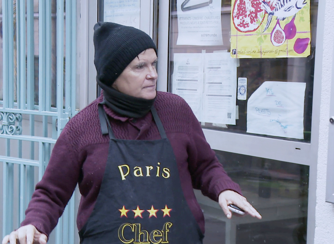 Dans la pénombre du tunnel qu’ils partagent, tous se connaissent et s’entraident. Kamel, ancien patron de bar, survit sur un matelas ; d'autres racontent l’alcool, la prison, le crack et la violence - un coup de couteau qui peut surgir à tous instants. “Je préfère être là que sur un banc. Au moins, je mourrai pas de froid cet hiver,” dit l'un d'entre eux, en montrant son coin aménagé. En plein jour sur le trottoir devant la Cantine des Pyrénées, des bénévoles (parfois eux-mêmes SDF) veillent à la distribution des cafés et des tartines. Un personnage surgit pour "lancer sa campagne électorale" : "Pour que tout le monde dorme au chaud et au sec, on fera payer les riches !” Film de 2e année à La Fémis, Début d’hiver débute et s'achève par des séquences de manifestations mâtées par des régiments de CRS. La rébellion gronde...