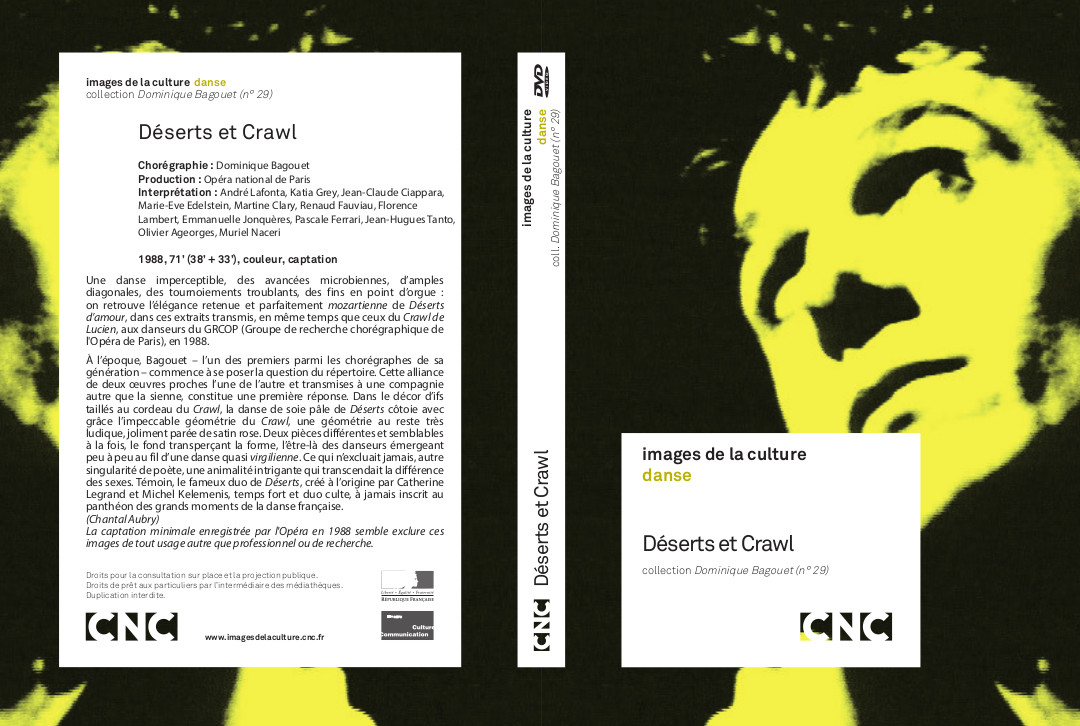 Une danse imperceptible, des avancées microbiennes, d’amples diagonales, des tournoiements troublants, des fins en point d’orgue : on retrouve l’élégance retenue et parfaitement mozartienne de Déserts d’amour, dans ces extraits transmis, en même temps que ceux du Crawl de Lucien, aux danseurs du GRCOP (Groupe de recherche chorégraphique de l'Opéra de Paris), en 1988.