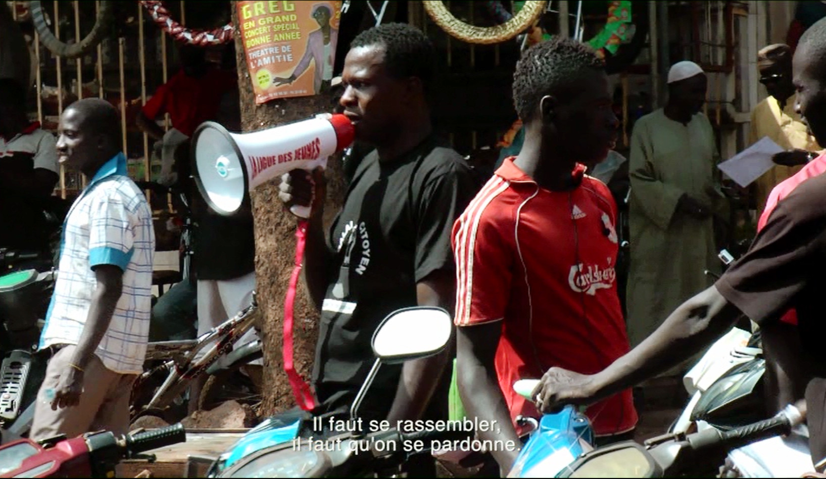 Frédérique Lagny nous fait partager les doutes du Balai citoyen, leurs réunions tactiques, le soir dans l’urgence. Car leur maturité politique est étonnante et tranche avec l’absence de vie démocratique organisée dans le pays. Fait unique en Afrique de l’Ouest, un collectif citoyen est parvenu à mobiliser pour renverser un Président pourtant enraciné depuis 27 ans dans le paysage politique. Film en empathie avec cette exemplaire expérience démocratique, Djama mourouti la raconte, en faisant résonner son combat et son espoir.