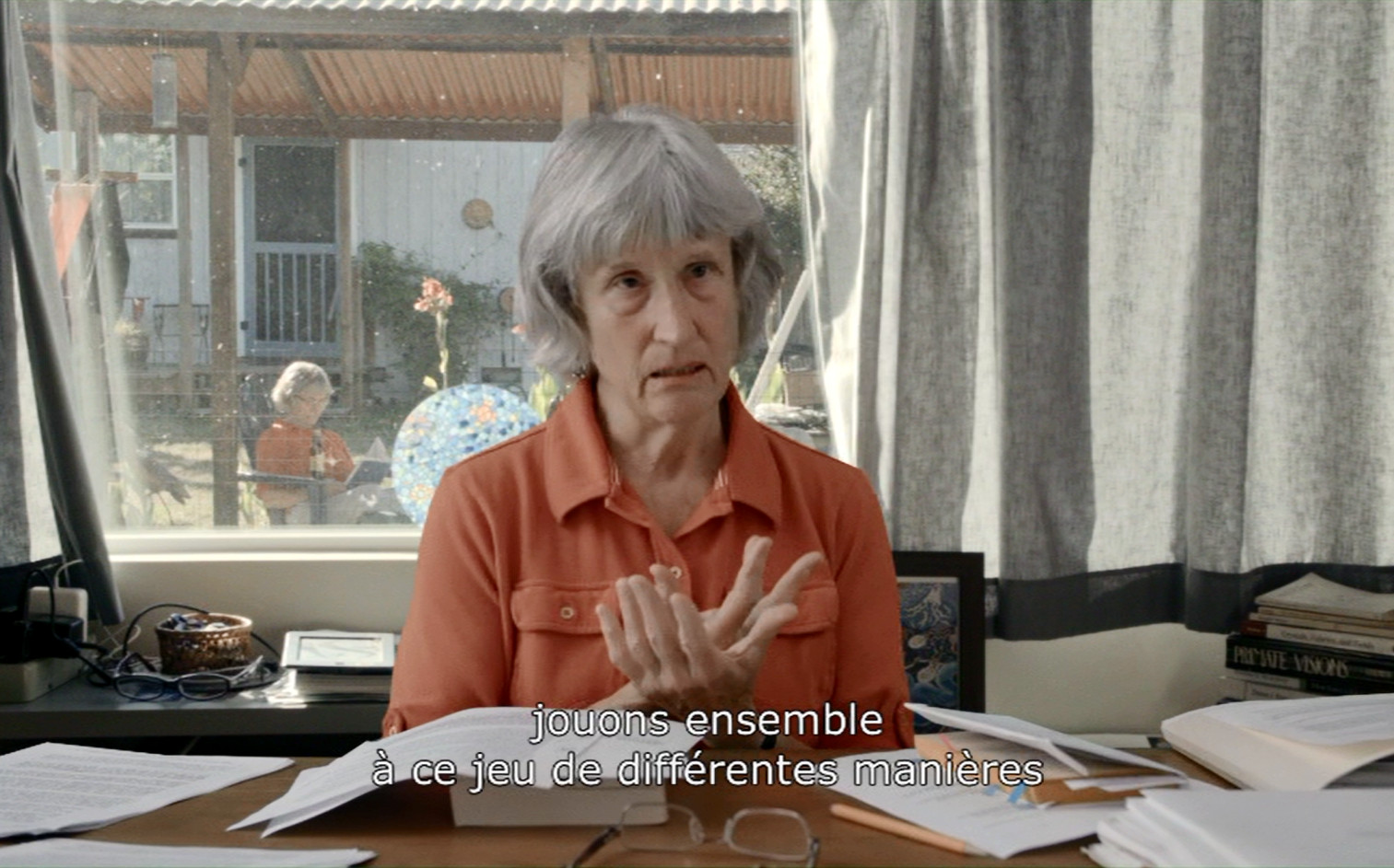 C’est une pensée déroutante que celle de Donna Haraway. Peu connue en France, même si elle entretient un dialogue avec des chercheurs comme Isabelle Stengers et Bruno Latour, l’auteur du Manifeste Cyborg (1984) nous emmène sur un territoire à la frontière des sciences humaines, de l’activisme et de la science-fiction. Animée par une lutte contre les modèles dominants de la pensée, tirant son origine de la révolte contre l’effacement des femmes dans un monde régi par les hommes, cette pensée s’efforce d’intégrer tout ce qui est menacé d’effacement. C’est une pensée du dialogue qui vise à renouveler nos manières de vivre ensemble, non seulement à l’intérieur de la communauté humaine, mais avec les autres espèces et en harmonie avec nos moyens technologiques. Ce souffle utopique a inspiré à Fabrizio Terranova une forme peu conventionnelle, hybridation d’entretiens, d’ambiance crépusculaire et de surimpressions. Une évocation fantastique rythmée par les éclats de rires de Donna Haraway.