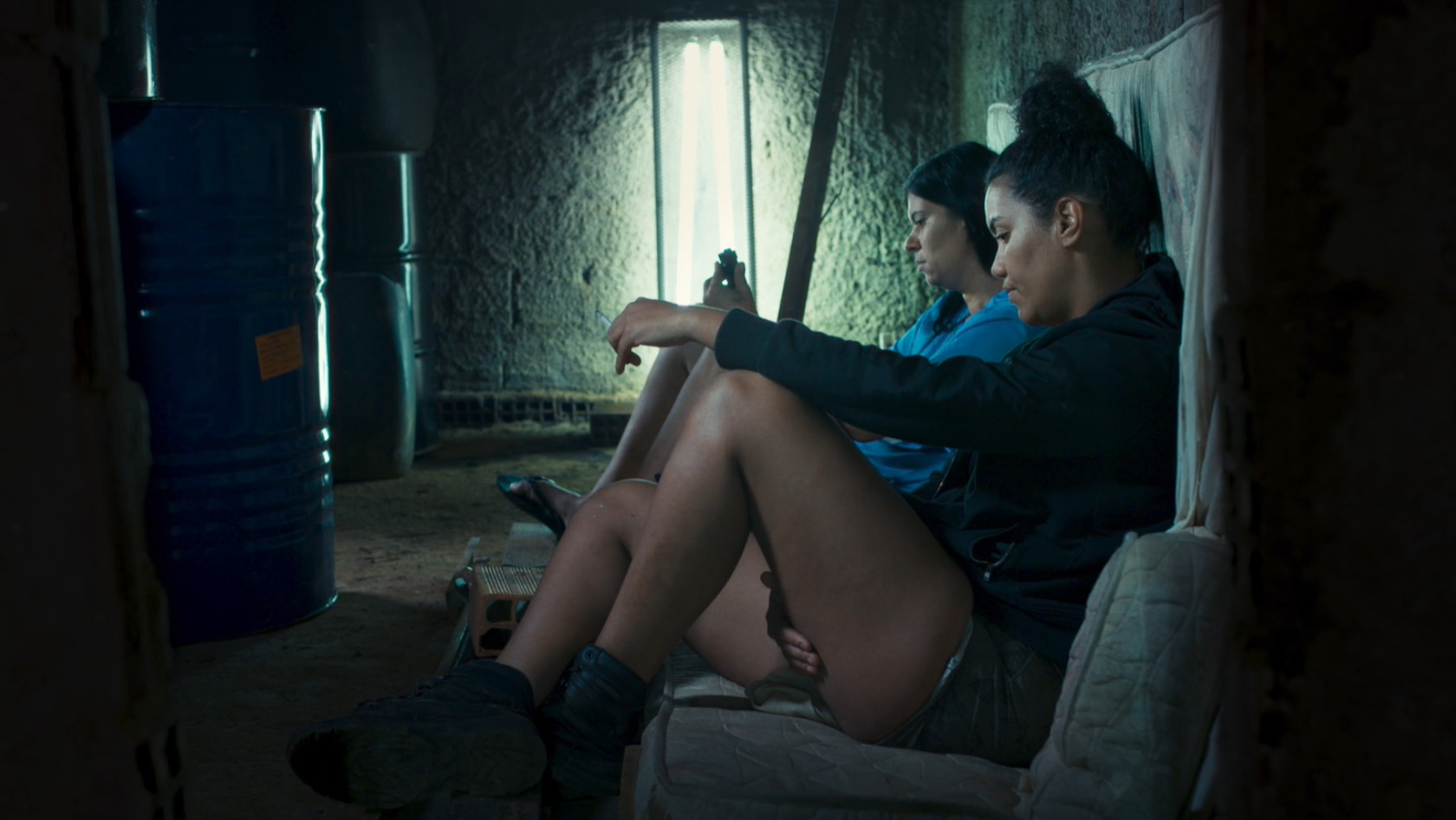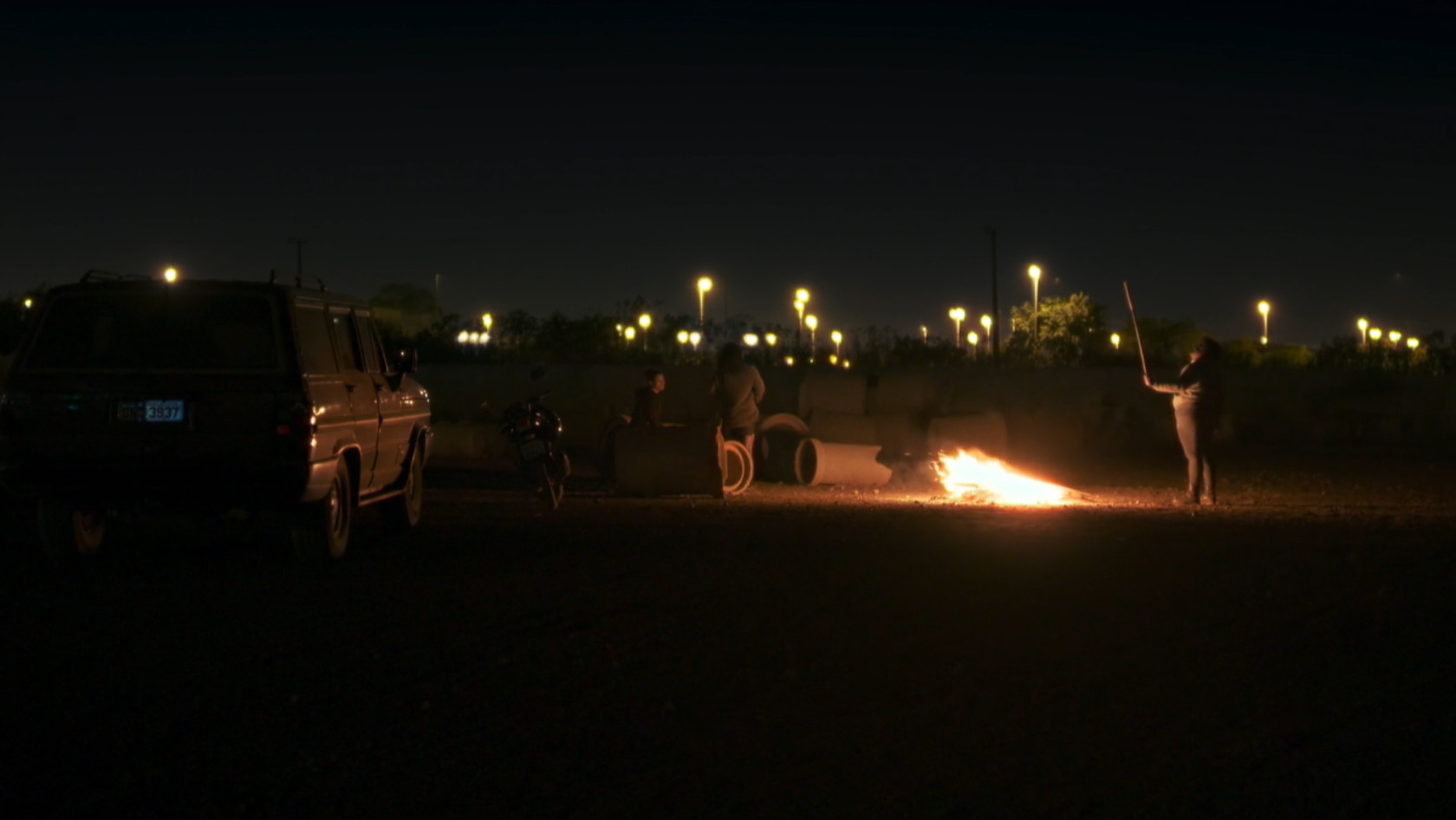 Dès les premières images, l'ambiance très particulière du film est posée : des sirènes de police retentissent au loin dans la nuit, des chiens aboient, et telle une héroïne d'un film de science-fiction, Chitara sur sa moto apparaît à l'écran, éclairée par la seule lumière du feu qui brûle à ses côtés. Pendant les deux heures trente que durent le film, le spectateur ne saura ainsi jamais vraiment quand il regarde une œuvre de fiction ou un documentaire. Cela ne l'empêchera pourtant pas de s'intéresser à l’histoire de Chitara et Lea, les deux sœurs de Sol Nascente, une favela de Ceilandia, ville proche de Brasilia. Aidées d'autres femmes, elles y gèrent une raffinerie clandestine et revendent leur pétrole à un gang de motards surarmés tout en militant au Prison People Party qui tente de défendre les classes populaires et les prisonniers. Même s’il emprunte les codes du cinéma de fiction, Dry Ground Burning nous plonge dans une réalité très actuelle, celle du Brésil de Bolsonaro, et nous fait vivre au plus près la révolte et la rage des habitants de ces périphéries, ici incarnées par des femmes résistantes et prêtes à ne jamais s’arrêter de lutter.