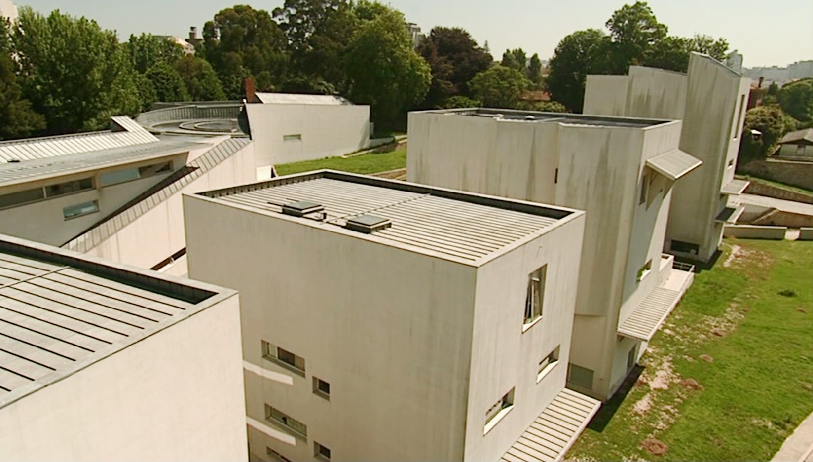 En 1985, l'Ecole est installée sur le site d'une ancienne propriété, sur les berges du Douro, où dominent cultures en terrasse exposées au sud et belles demeures du XIXe siècle. Siza construit alors rapidement un premier pavillon sur un plan trapézoïdal inspiré des maisons portugaises du XVIIIe siècle. Dès 1986, l'Ecole doit recevoir cinq cents étudiants. Siza conçoit tout d'abord un immense cube, inspiré par le palais de l'Evêque de Porto. Au fil du projet, il le fragmente en un assemblage de bâtiments, sans façade principale, disséminés au hasard de la végétation, à l'image de l'urbanisme éclaté de la proche périphérie. Au sud, quatre petits bâtiments ouverts sur le fleuve, de simples volumes aux fenêtres variées abritant les salles de cours. Au nord, les bâtiments administratifs, la bibliothèque et l'auditorium donnent sur les voies d'accès de l'autoroute. Rampes inclinées, escaliers ouverts sur l'extérieur, les cheminements sont variés, les espaces de rencontre également.