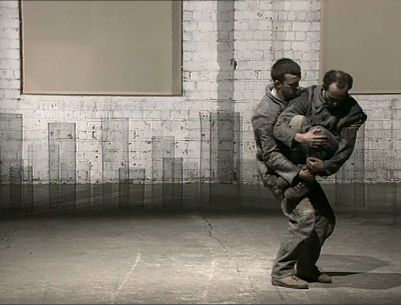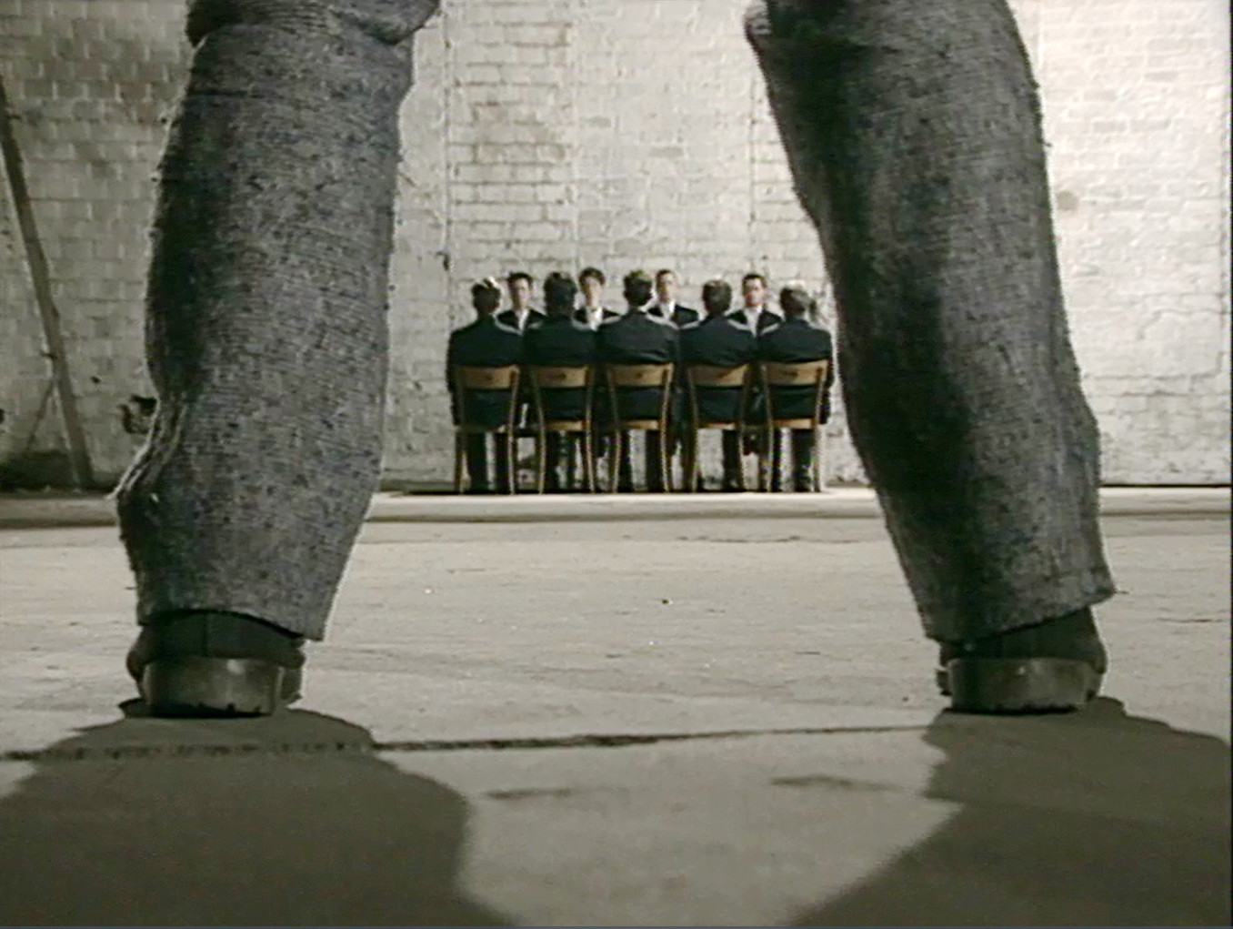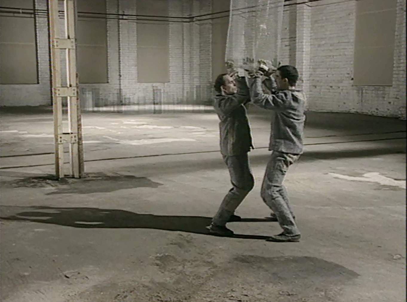 D'abord, le gris : celui monocorde d'une friche industrielle, celui plombé des vêtements et celui plus transparent des grillages autour des corps. Puis, le blanc : celui des chemises immaculées d'un groupe mystérieux qui s'attable et celui, saturé, d'une lumière qui joue avec l'architecture. Enfin, la danse, lente et physique, absorbée par les teintes et bouleversant imperceptiblement nos repères. Un film qui joue sur l'esthétique des matières pauvres à mi-chemin entre les arts plastiques (Fischli et Weiss pour la séquence de téléscopage d'objets), la performance (happenings allemands) et la danse (l'énergie du contact-improvisation maté par une écriture soucieuse des formes). Une atmosphère kafkaïenne de désolation et d'absurdité. Stefan Schneider, interprète de la Compagnie Sidonie Rochon, donne le sentiment avec cette deuxième réalisation, d'entamer l'exploration d'un univers cohérent, fragile bien que très affirmé.