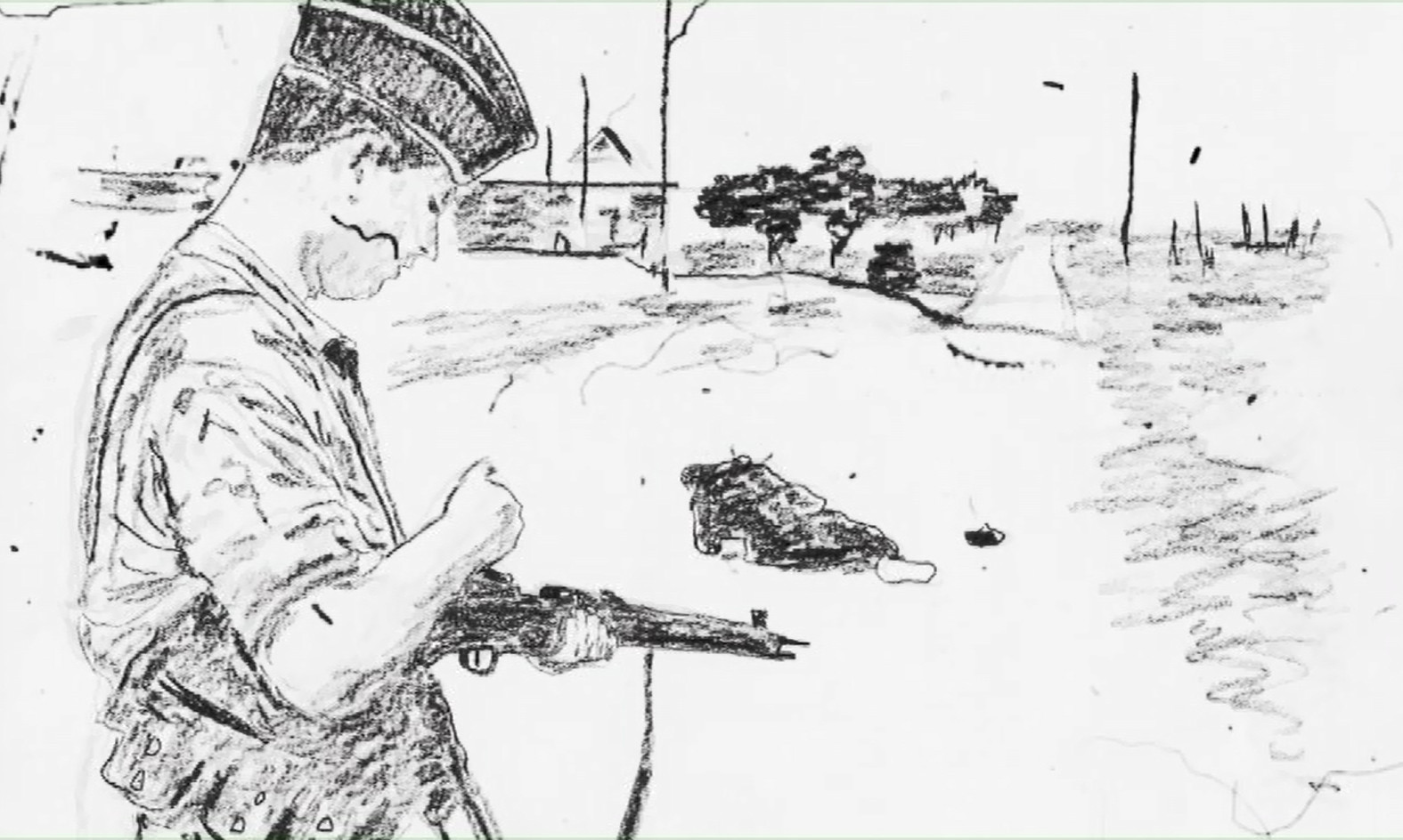 À l’écran : un dessin. L’image bruite à la façon d’une vieille pellicule abîmée par le temps. Et puis, le réalisateur nous invite dans son appartement où il sort, un à un, documents et photographies contenus dans une vieille boite à chaussures ; des images arrêtées qu’il vient mettre en mouvement. Émerge alors l’histoire morcelée d’un homme dont le visage revient souvent. Se dresse un portrait en creux où les faits historiques, les lieux, les noms semblent être les seuls points d’ancrage et servent d’amorces pour imaginer ce que ces photographies peuvent raconter. En 9 minutes, Vianney Lambert, avec sa voix feutrée, tente de reconstituer l’autre, sa vie supposée, ce qui n’est pas sur la photographie et il parvient à créer une mise en abîme poétique où le film devient à son tour cette petite boite contenant une histoire.