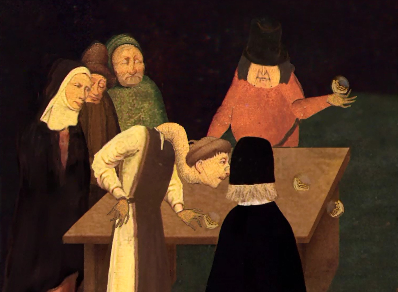 Face à l'oeuvre foisonnante de Jérôme Bosch (1450-1516), Eve Ramboz se prend à rêver. Soudain, hommes, plantes, arbres, rivières, poissons, tous les motifs s'animent dans l'espace du tableau, pour une promenade muette, tours et détours d'une poésie surréaliste. Par son travail d'animation, Eve Ramboz entraîne l'oeil d'une manière étonnante dans l'univers fantastique du peintre.