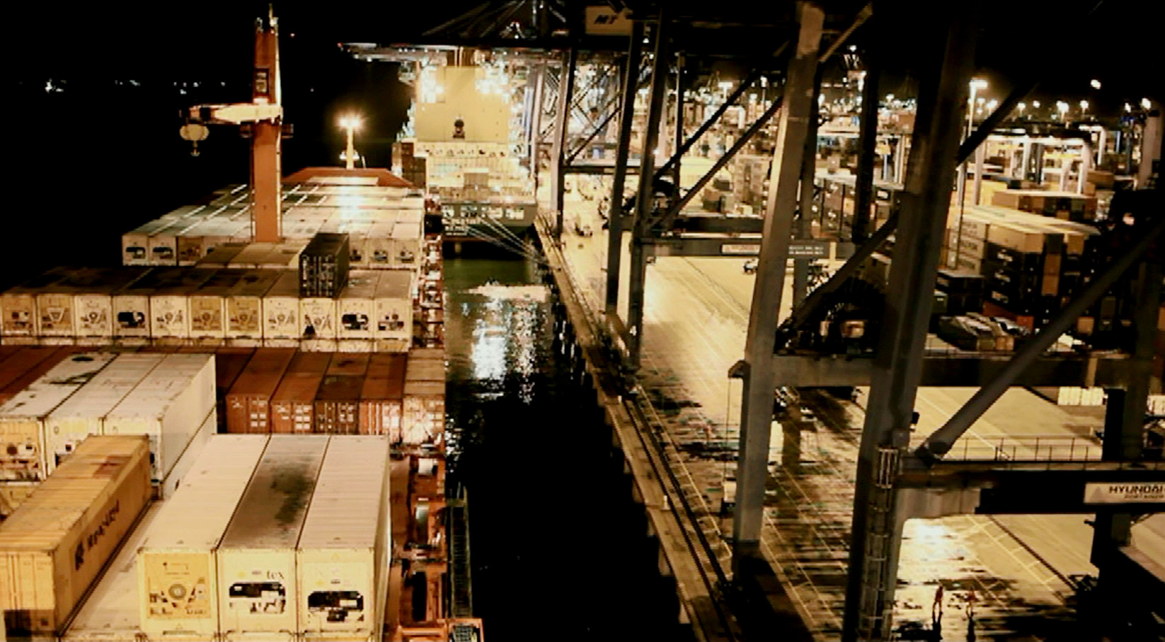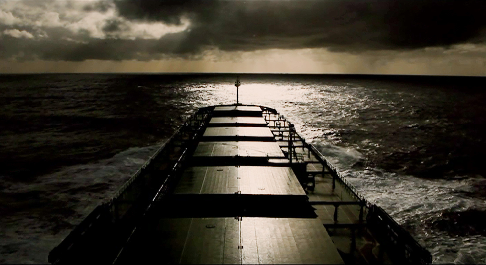 Le pont d’un cargo, la nuit, battu par les vagues. La voix d’une femme chante l’amour des marins. Sa langue est l’espagnol, est-elle chilienne ? De la fenêtre de sa chambre elle contemple le port et se souvient des amours passées, des hommes partis au loin pour ne plus revenir. Tandis que vogue l’immense cargo armé de ses conteneurs, un homme à son tour, en grec, raconte le rêve infini de la mer.