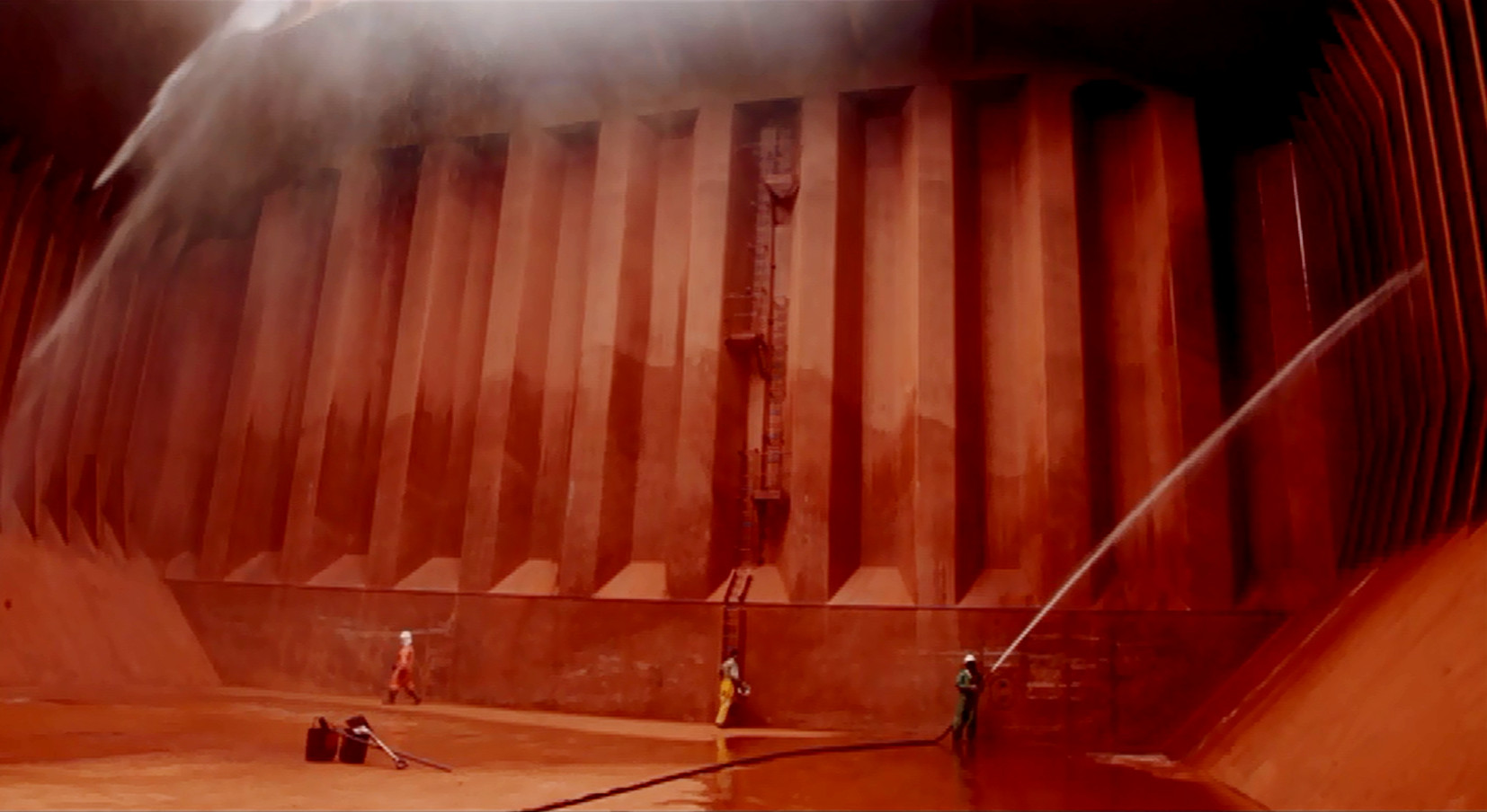 Prostituées et marins. Qu’est-ce qui les relient au-delà de leur rencontre éphémère dans un port du bout du monde ? Les femmes parlent des marins grecs qui partent en laissant derrière eux une "bombe d’amour" qui explose à retardement, les hommes parlent de l’infini de la mer comme d’un rêve qui les libère de toute attache terrestre. Le ventre du navire résonne de ces deux absolus : le désir éperdu de la femme pour celui qui ne reviendra jamais, la course éperdue du marin d’un bord à l’autre du monde. Embarquée sur un cargo dont l’équipage est composé de Grecs et de Philippins, l’artiste Evangelia Kranioti partage la vie quotidienne des marins, l’isolement et la somptueuse monotonie du voyage sur des mers australes couvertes de glace, les escales nocturnes et l’ivresse dans les bars interlopes d’Amérique du Sud. Son film, imprégné de la rude sensualité des corps et des machines, cherche à en dégager le mystère ou la mélodie, dans le sillage des récits et poèmes de Nikos Kavvadias.