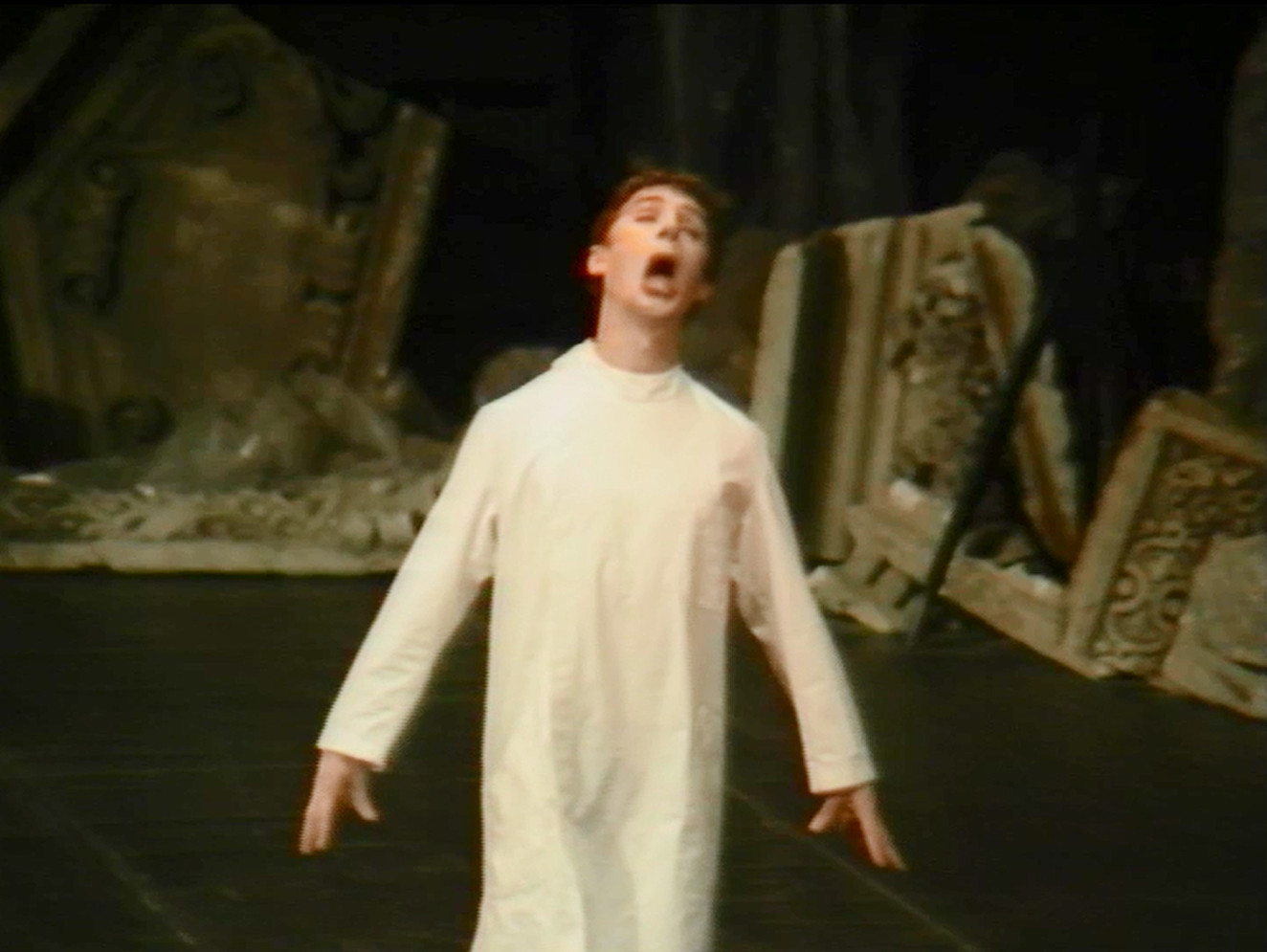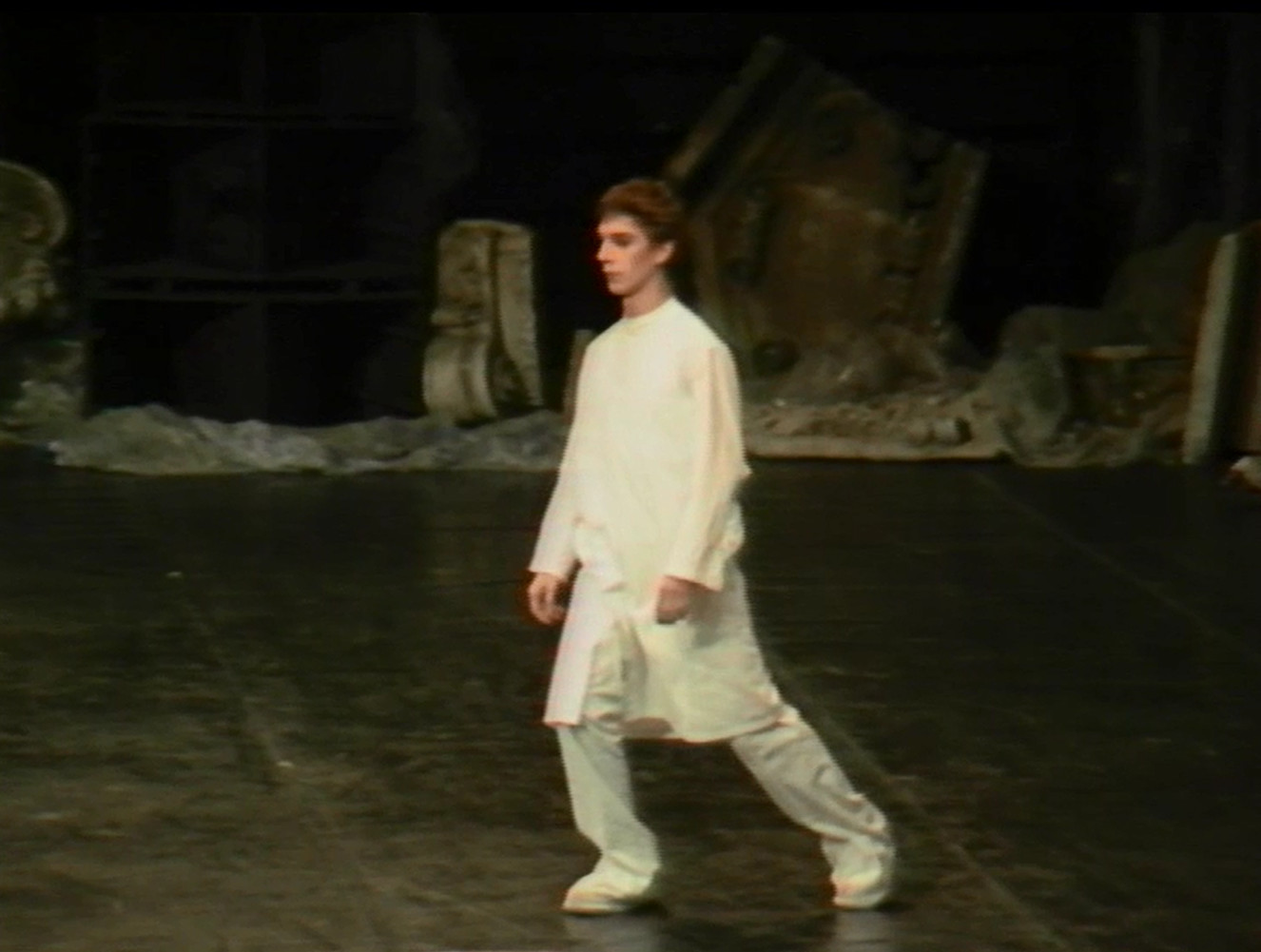 L’un des moments clés de F. et Stein, autoportrait unique dans l’œuvre de Dominique Bagouet, est celui où, placé de profil, il déforme progressivement son visage jusqu’à la monstruosité. Difforme, méconnaissable, il revient peu à peu à lui, évoquant ces visages clos sur eux-mêmes des grands malades hystériques après l’accalmie, tels que Charcot les montra jadis. Moment d’anthologie dans une performance qui en compte beaucoup d’autres...