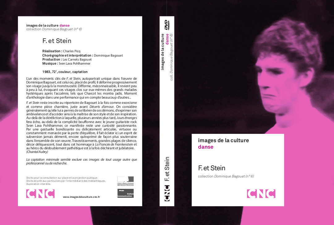 F. et Stein reste inscrite au répertoire de Bagouet à la fois comme exorcisme et comme pièce charnière, juste avant Déserts d’amour. On considère généralement qu’elle lui a permis de se libérer de ses démons, d’exprimer son ambivalence et d’accéder ainsi à la maîtrise de son style et de son inspiration. Au-delà de la déréliction à laquelle, plusieurs années plus tard, Jours étranges fera écho, au-delà de la complicité bouffonne avec le jeune guitariste rock Sven Lava Pohlhammer, ce manifeste reste une curiosité passionnante. Par une gestuelle bondissante ou délicatement articulée, virtuose ou constamment menacée par la perte d’équilibre, il fait éclater ici un esprit de subversion jamais démenti, encore qu’exprimé de façon plus souterraine dans l’ensemble de son œuvre. Travestissements, grandes plages de silence, décor déliquescent, tout dans cet hommage à La Fiancée de Frankenstein et au héros du dédoublement pathétique est à la fois déchirant et jubilatoire.