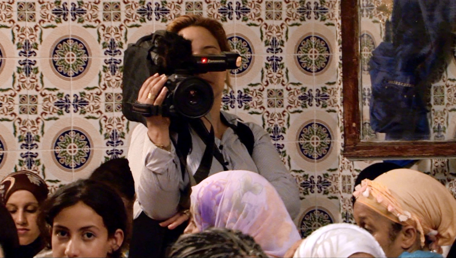 La Femme à la caméra restitue de manière juste l’enfermement social dans lequel Khadija se retrouve. Une société fermée où la puissance des traditions religieuses et sociales enferme les femmes dans un rôle assigné, soumis au regard désapprobateur des hommes, des autres femmes et du qu’en dira-t-on. Khadija doit lutter, dans l’espace privé et familial comme à l’extérieur. Peu de répit : les seules respirations possibles sont les relations qu’elle peut entretenir avec des femmes dans la même situation qu’elle. Avec simplicité et sobriété, la réalisatrice leur donne la parole, elles qui ne l’ont pas dans l’espace public.