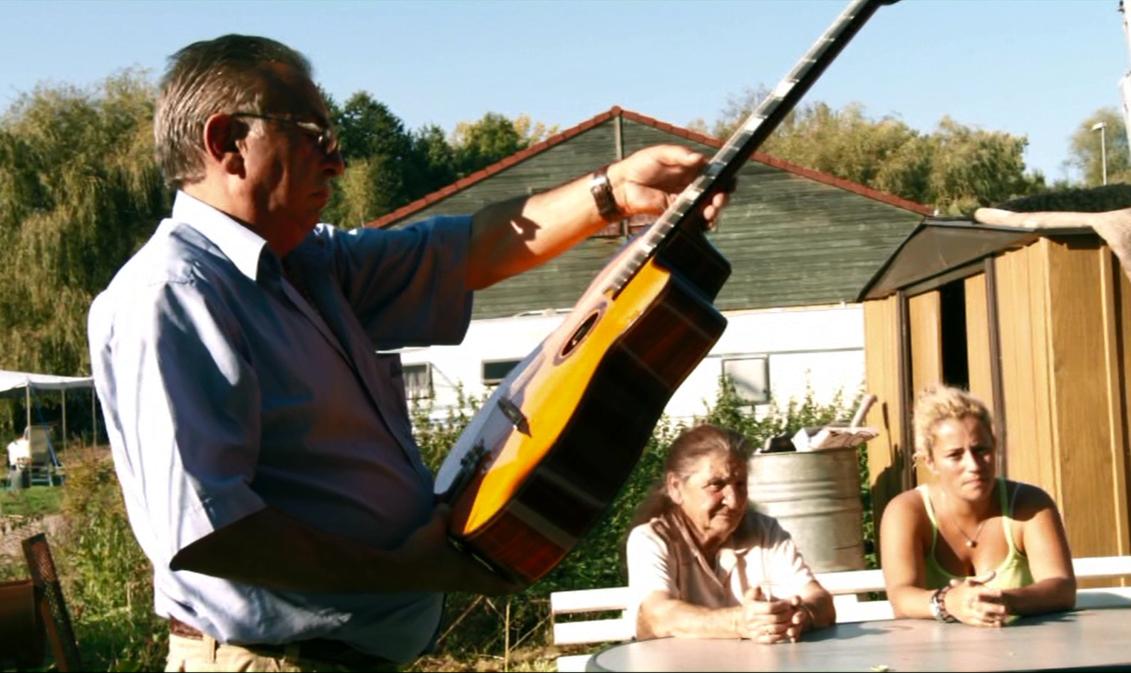 Ce qu’il y a de beau avec la musique c’est qu’elle rassemble. C’est exactement ce que nous raconte le film, l’histoire d’une communauté manouche pour qui la musique est une identité. Dans cette communauté, un groupe d’hommes qui tentent de vivre de cette destinée artistique. Ils sont soutenus par la famille, qui procure par ces moyens modestes des lieux de répétions et finance leur album. Soutenus également par la communauté, la famille au sens plus large, dont ils animent les chaleureuses soirées. Ce bonheur d’être ensemble, cette joie de vivre, il est possible de la voir à l’écran car la réalisatrice semble avoir un intérêt particulier pour le jazz manouche et on sent une connivence entre celle qui filme et les filmés. On a bien envie de croire à leur succès, mais ce qui reste, c’est un film heureux comme pourrait l’être une comédie musicale, avec tout ce qu’il y a de plus touchant quand on s’investit comme ils le font.