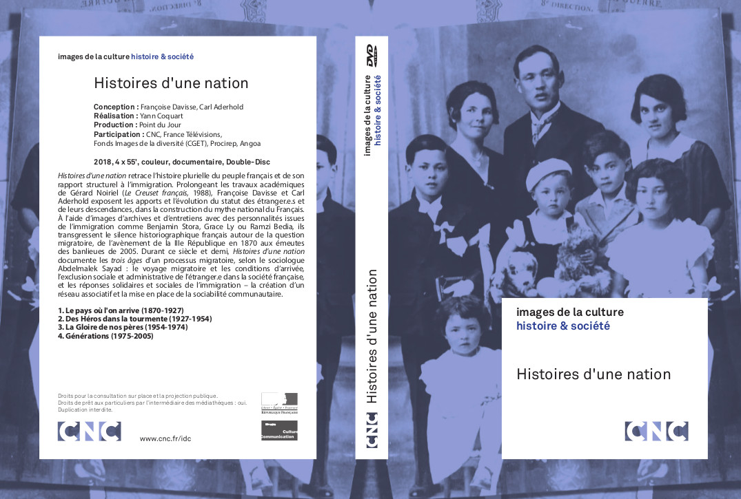 Histoires d’une nation retrace l’histoire plurielle du peuple français et de son rapport structurel à l’immigration. Prolongeant les travaux académiques de Gérard Noiriel (Le Creuset français, 1988), Françoise Davisse et Carl Aderhold exposent les apports et l’évolution du statut des étranger.e.s et de leurs descendances, dans la construction du mythe national du Français. À l’aide d’images d’archives et d’entretiens avec des personnalités issues de l’immigration comme Benjamin Stora, Grace Ly ou Ramzi Bedia, ils transgressent le silence historiographique français autour de la question migratoire, de l’avènement de la IIIe République en 1870 aux émeutes des banlieues de 2005. Durant ce siècle et demi, Histoires d’une nation documente les trois âges d’un processus migratoire, selon le sociologue Abdelmalek Sayad : le voyage migratoire et les conditions d’arrivée, l’exclusion sociale et administrative de l’étranger.e dans la société française, et les réponses solidaires et sociales de l’immigration – la création d’un réseau associatif et la mise en place de la sociabilité communautaire.