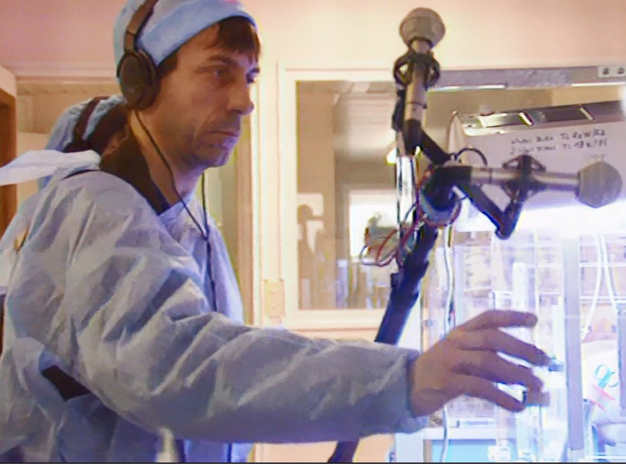 Nicolas Frize fait le pari d'une rencontre entre le milieu musical et hospitalier. Il "ausculte" l'hôpital à sa façon. Il parcourt les couloirs à la recherche de sons et enregistre tout. Pour lui, ces bruits sont comme une partition de la vie quotidienne et contribuent à rendre "les choses intelligibles, visibles, audibles, plus multiples que ce que nous croyons". En offrant des mini-concerts de musique classique dans les chambres, les couloirs ou les ascenseurs, en proposant un travail sur la matière constituée par les sons environnants, son équipe a permis au personnel et aux malades d'élargir leur vision sur ce lieu où habituellement on souffre. C'est ce que semble dire cette puéricultrice pour qui l'hôpital, grâce aux cours de chants, apparaît maintenant comme un grand corps où chacun a sa place.