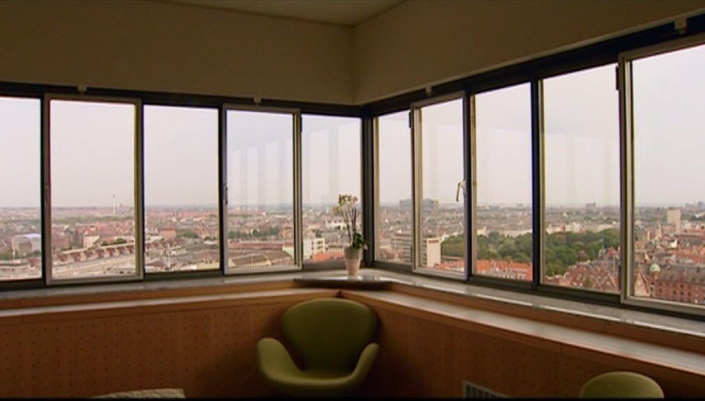 Sont décortiqués ici les choix opérés pour sa construction. Pour accroître ses ventes, la compagnie aérienne SAS des trois royautés scandinaves a l'idée de ce programme fonctionnel. Pour l'hôtel, Jacobsen adopte un symbole du progrès, la tour, mais il souhaite l'intégrer au bâti du centre ville. Ainsi, le socle abritant le terminal est une charnière visuelle qui respecte en hauteur le gabarit environnant. Le mot d'ordre est la légèreté : les structures porteuses en béton sont invisibles à l'extérieur et les façades sont une peau traitée en transparences et en reflets. Si le socle s'autorise des bandes bardées d'aluminium, la tour alterne vitres des fenêtres ruban et verre teinté de clair masquant les parties pleines : les surfaces se fondent dans le ciel changeant et les vues panoramiques obtenues sont un atout commercial majeur. Le design intérieur, modulaire ou organique, est pensé dans ses moindres détails. Aujourd'hui, seule une chambre-musée en témoigne. Le terminal s'est converti en salles de fitness et de réunion, et l'hôtel est rénové.