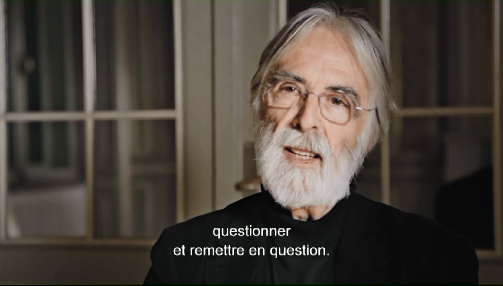 A l’instar des écrivains Peter Handke, Thomas Bernhard et Elfriede Jelinek, le cinéaste fustige une société autrichienne qui se pose en victime. Pas de place pour le divertissement donc, ses films posent la question d’une violence qui jaillit toujours hors champ, comme ici lorsque le père bat son fils bord cadre. La précision de sa mise en scène se retrouve dans sa méthode : le story-board, qu’il dessine lui-même de manière presque enfantine, contient toutes les indications destinées à l’équipe. Une année de repérage, 7000 enfants auditionnés : le cinéma d’Haneke ne laisse pas de place à l’improvisation. Du chef-opérateur Christian Berger au directeur de casting Markus Schleinzer, qui a accompagné les jeunes acteurs du film, ses collaborateurs racontent avec un mélange d’admiration et de terreur l’exigence du maître autrichien. Pour autant, Michael Haneke refuse de donner des réponses et voit au contraire ses films comme une réflexion ouverte à laquelle le spectateur est invité.