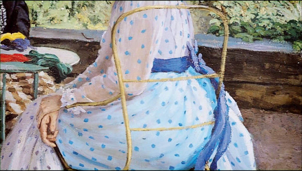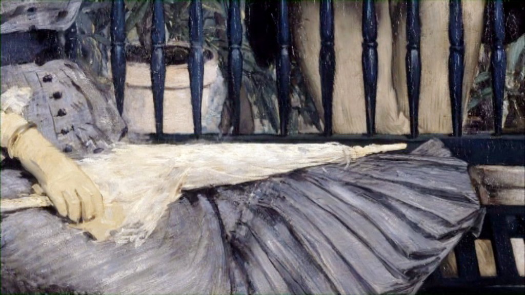 Pour les impressionnistes, un haut-de-forme ou une taille corsetée ancrent le motif dans le contemporain, au même titre qu'une gare ou un pont de fonte. L'évolution des styles vestimentaires dans leurs tableaux prouve leur promptitude à saisir sur le vif l'actualité, comme ils aiment capturer la lumière. Crinoline, traîne, faux-cul, la robe change et la silhouette aussi. Son asymétrie, dynamique, stimule Manet, Monet, Renoir ou Tissot, qui célèbrent le profil féminin et l'élégance parisienne. Poètes du mouvement qui empruntent à la photographie l'instantané suspendu entre l'avant et l'après, ils intègrent à leurs cadrages des vêtements "narratifs" : la tenue de sortie de la dame assise au café Lathuille, qu'un homme dévore des yeux, trahit la fraîche rencontre. Une ombrelle, un éventail, sont les indices d'attitudes nouvelles. Un corset dégrafé avoue une tragédie, ou la convoitise. Révélatrice sociale, la mode aide les peintres à montrer les rapports humains dans la vie quotidienne.